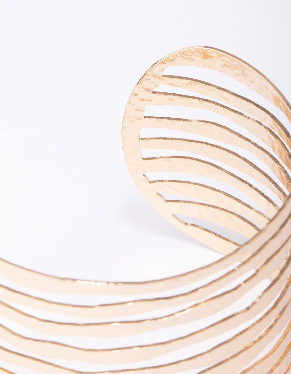 Add volume and detail to your stack with this gold-toned wrist cuff. This unique wrist cuff features a bold silhouette, crafted from thin bars for a layered and textured look.
