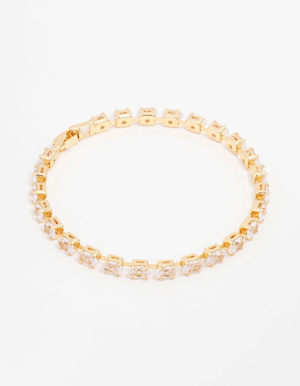 Gold Plated Oval Cut Cubic Zirconia Bracelet