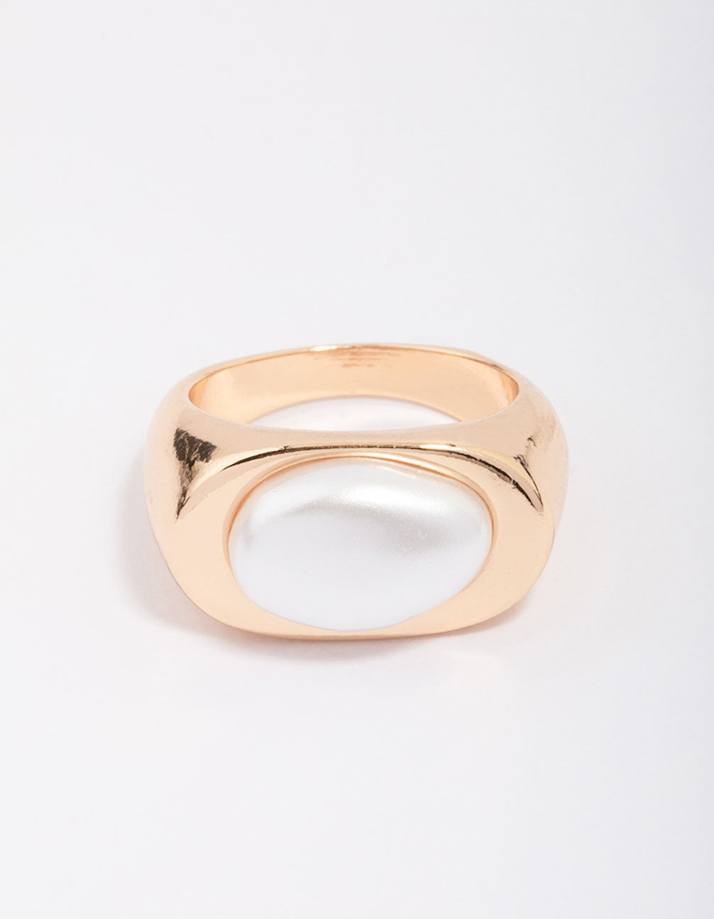 Add a unique touch to your stack with this signature signet ring. This gorgeous, gold-toned band features an oval-shaped pearl in the centre for a sophisticated touch.