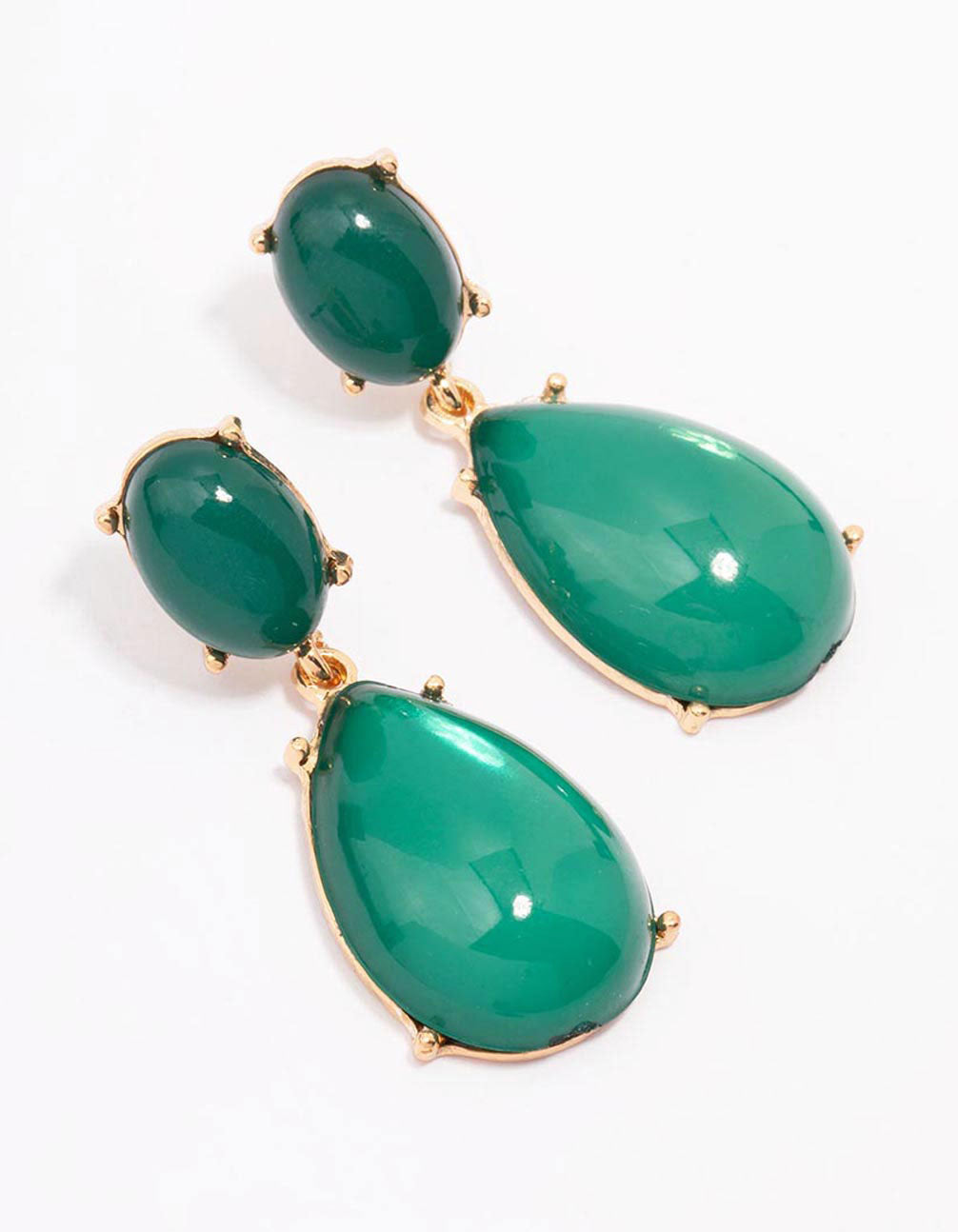 Channel Old Hollywood Glamour with our collection of eclectic jewellery pieces. These unique teardrop earrings feature two emerald-coloured stones, in an oval silhouette. Perfect for adding a touch of colour to your stack!