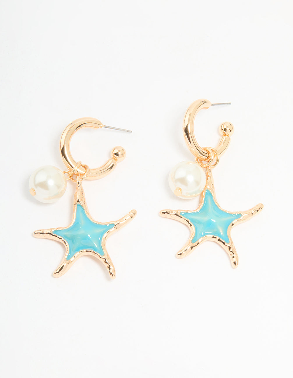 Gold Pearl & Blue Starfish Charm Huggie Earrings Gold Pearl & Blue Starfish Charm Huggie Earrings Gold Pearl & Blue Starfish Charm Huggie Earrings