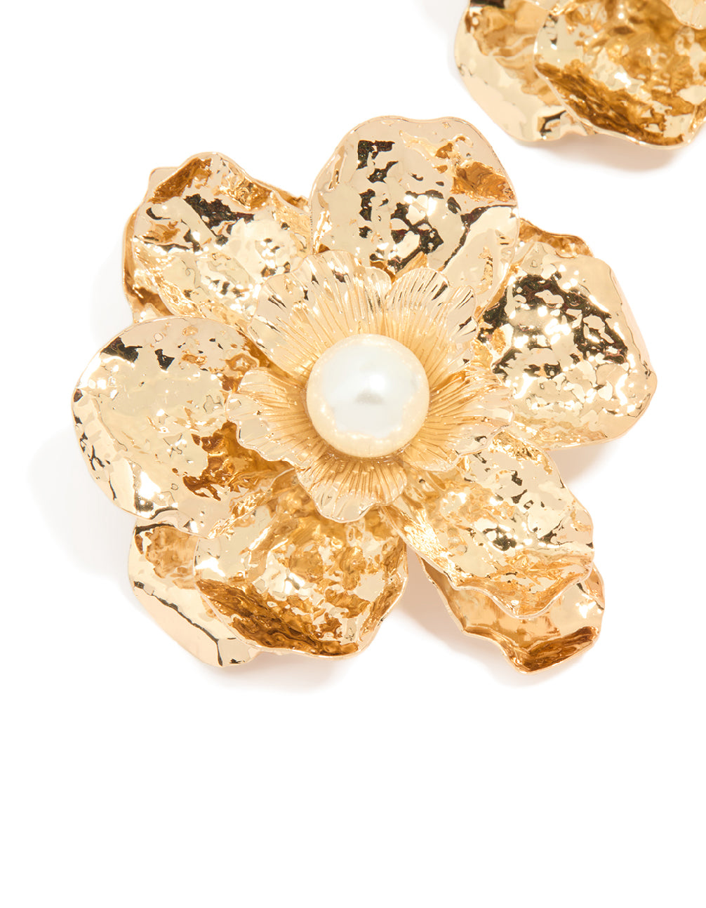 Gold Pearl Center Organic Flower Earrings Gold Pearl Center Organic Flower Earrings Gold Pearl Center Organic Flower Earrings