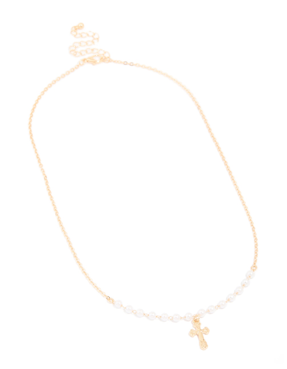Gold Pearl Cross Pendant Necklace