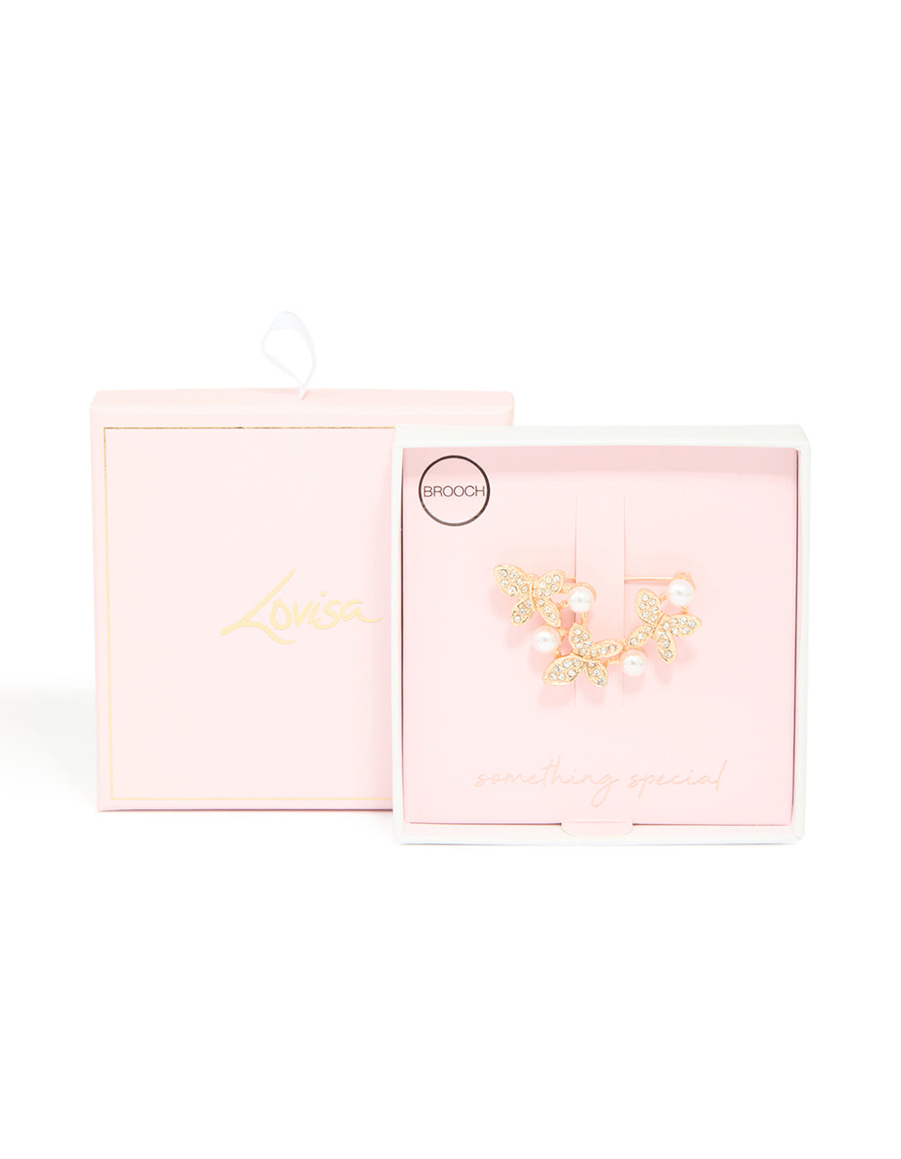 Add a touch of elegance to your look with this Gold Pearl Diamante Butterfly Trio Brooch. Featuring a trio of graceful diamante-encrusted butterfly designs, this brooch is finished in a beautiful gold tone, radiating charm and sophistication. Delicate pearl accents add a timeless touch, making it perfect for both everyday wear and special occasions. Pin it to your favourite blazer, scarf, handbag, or even a chic dress to elevate your outfit in an instant. Whether you’re heading to a wedding, a party, or just want to brighten up your day-to-day style, this brooch is a must-have accessory. Packaged beautifully for gifting, it’s an ideal present for someone special or a treat for yourself. Perfect for adding a feminine and elegant flair wherever you go!