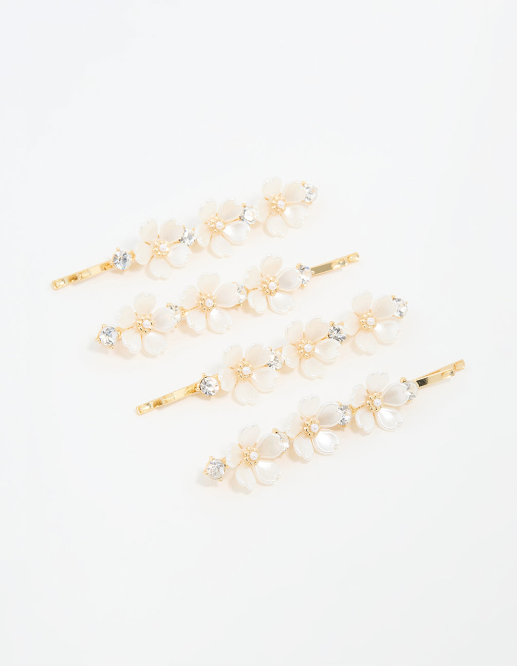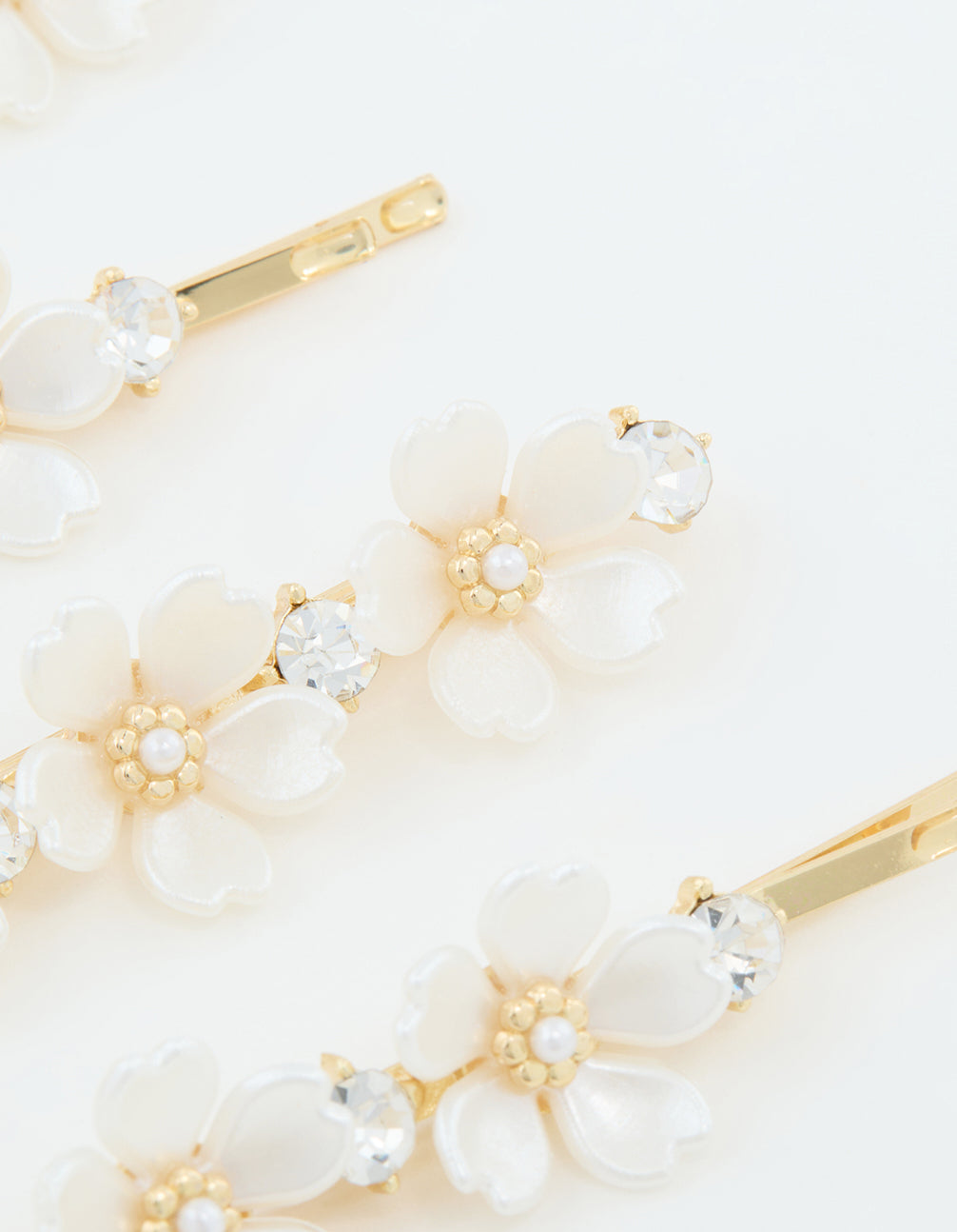 Gold Pearl Diamante Flower Hair Clips 3-Pack
