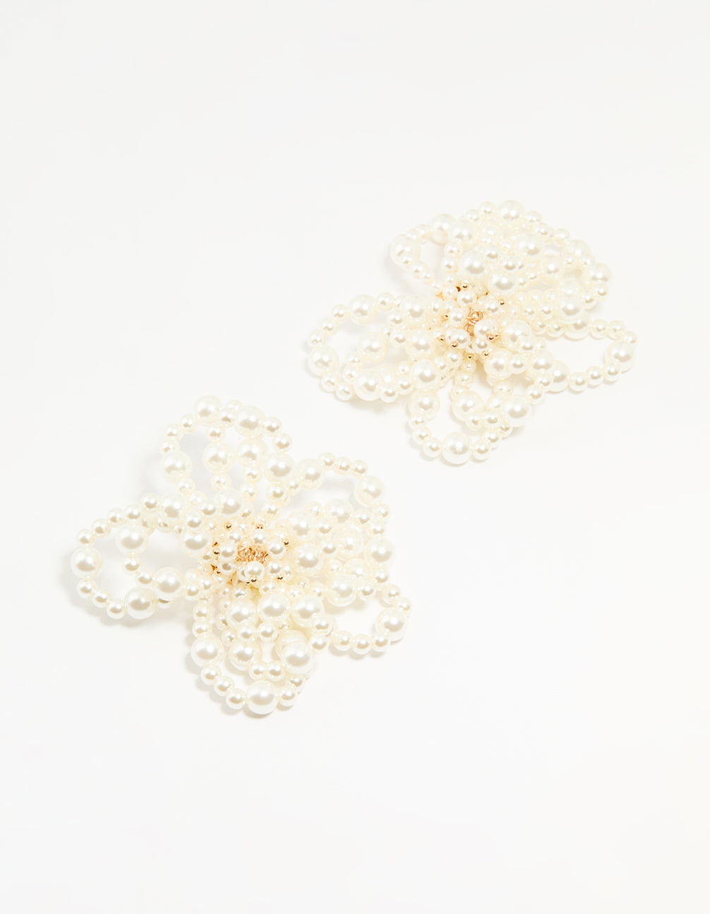 Gold Pearl Floral Stud Earrings