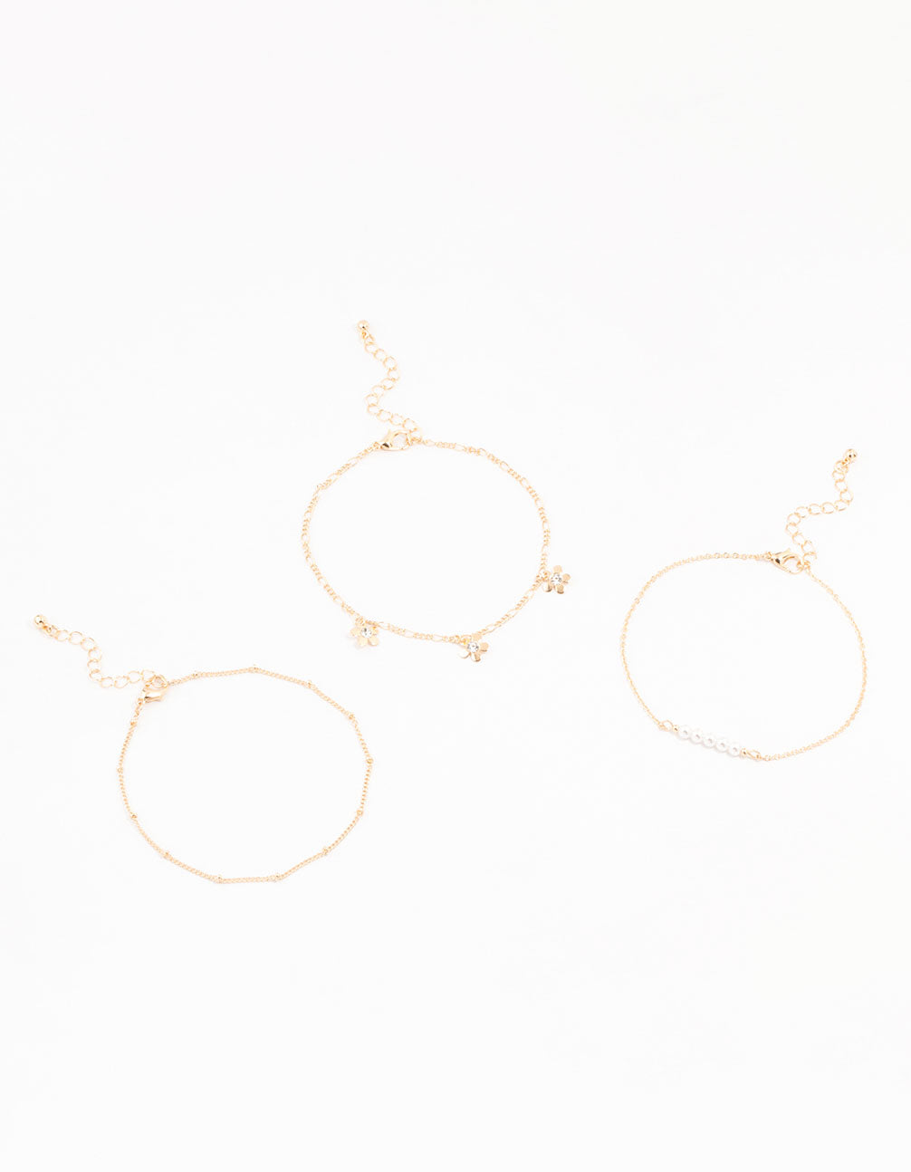 Gold Pearl Flower Drop Anklet 3-Pack