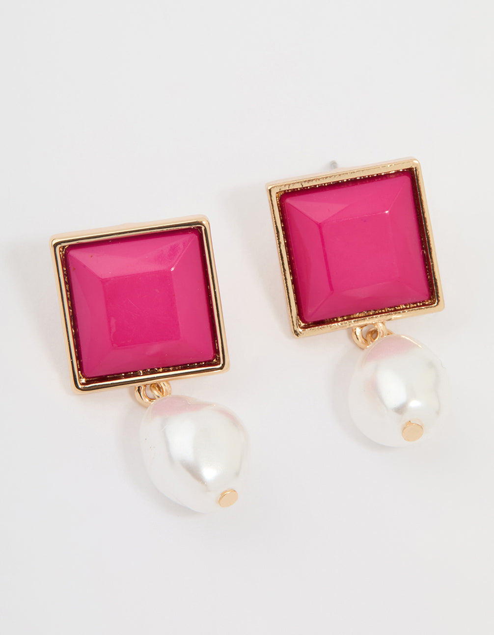 Add a pop of playful glamour to your look with these Gold Pearl & Hot Pink Square Drop Earrings. These vibrant drop earrings feature a chic gold finish, a lustrous pearl detail, and a bold hot pink square design that screams fun and sophistication. Ideal for parties, date nights, or even a stylish brunch, they're the perfect way to inject colour into your outfit. Pair these earrings with a sleek black dress for a striking contrast or a colourful ensemble to keep the energy alive. Whether you're searching for bold statement jewellery, colourful earrings, or a unique drop earring design, these beauties tick all the boxes. A must-have for anyone looking to stand out in style!