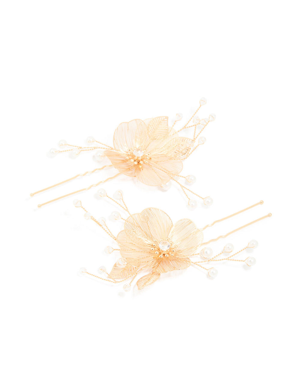 Gold Pearl Large Laser Cut Flower Hair Pins 2-Pack Gold Pearl Large Laser Cut Flower Hair Pins 2-Pack Gold Pearl Large Laser Cut Flower Hair Pins 2-Pack