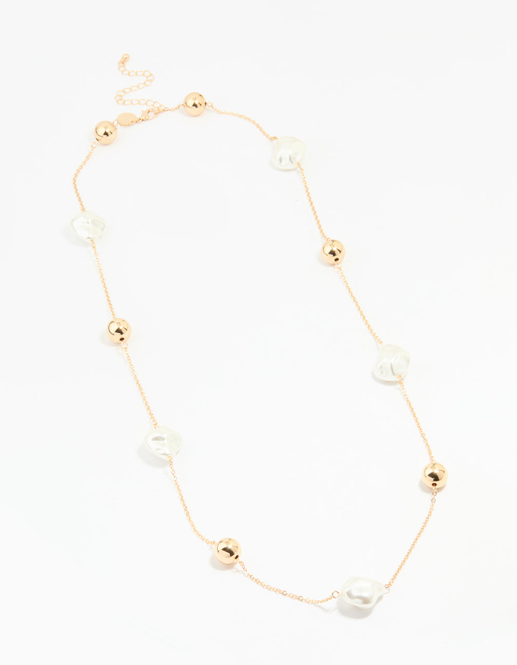 Gold Pearl & Solid Ball Long Link Necklace