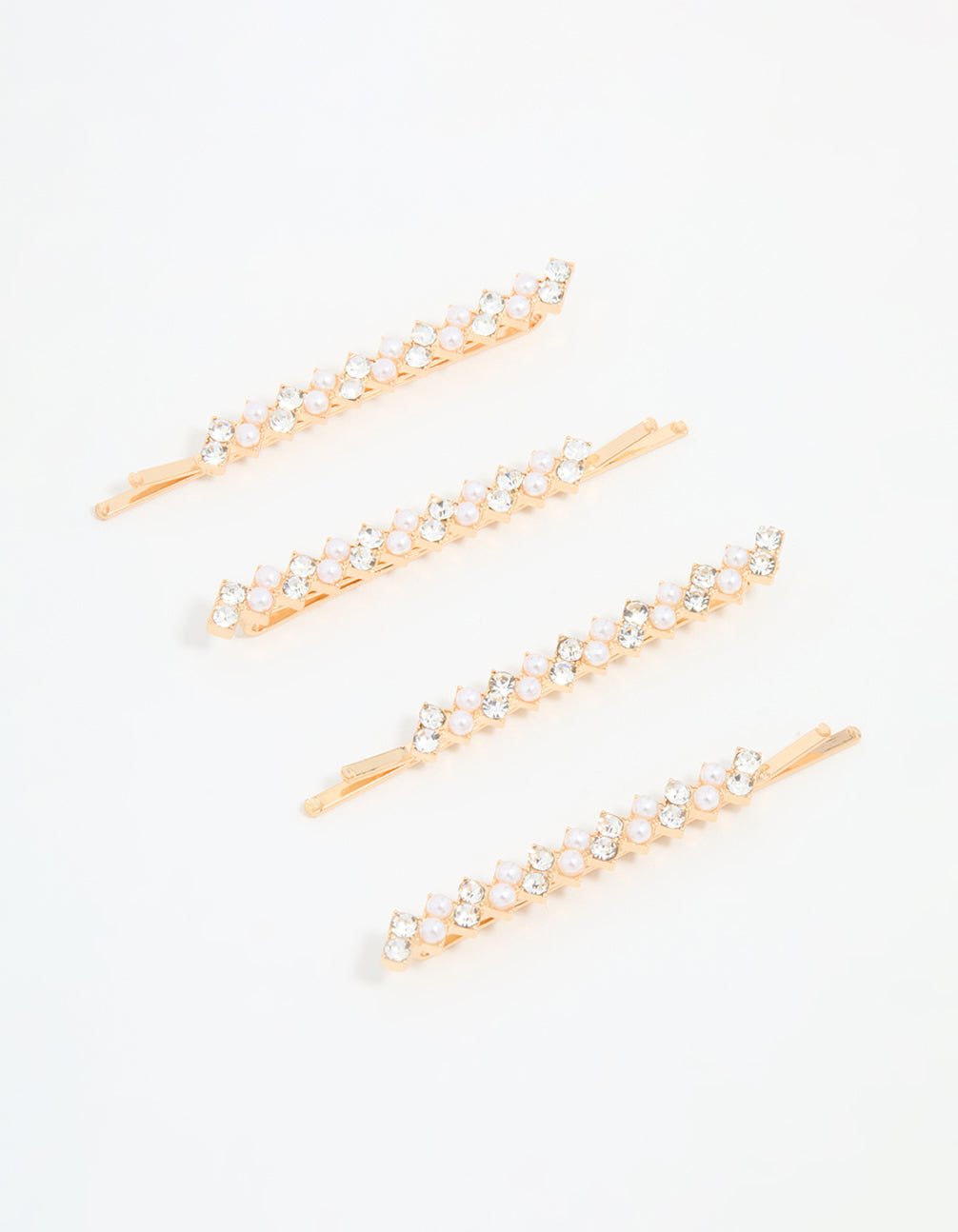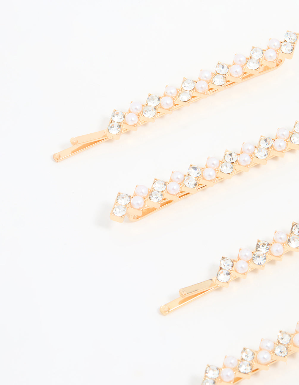 Gold Pearl Zigzag Hair Slides 4-Pack
