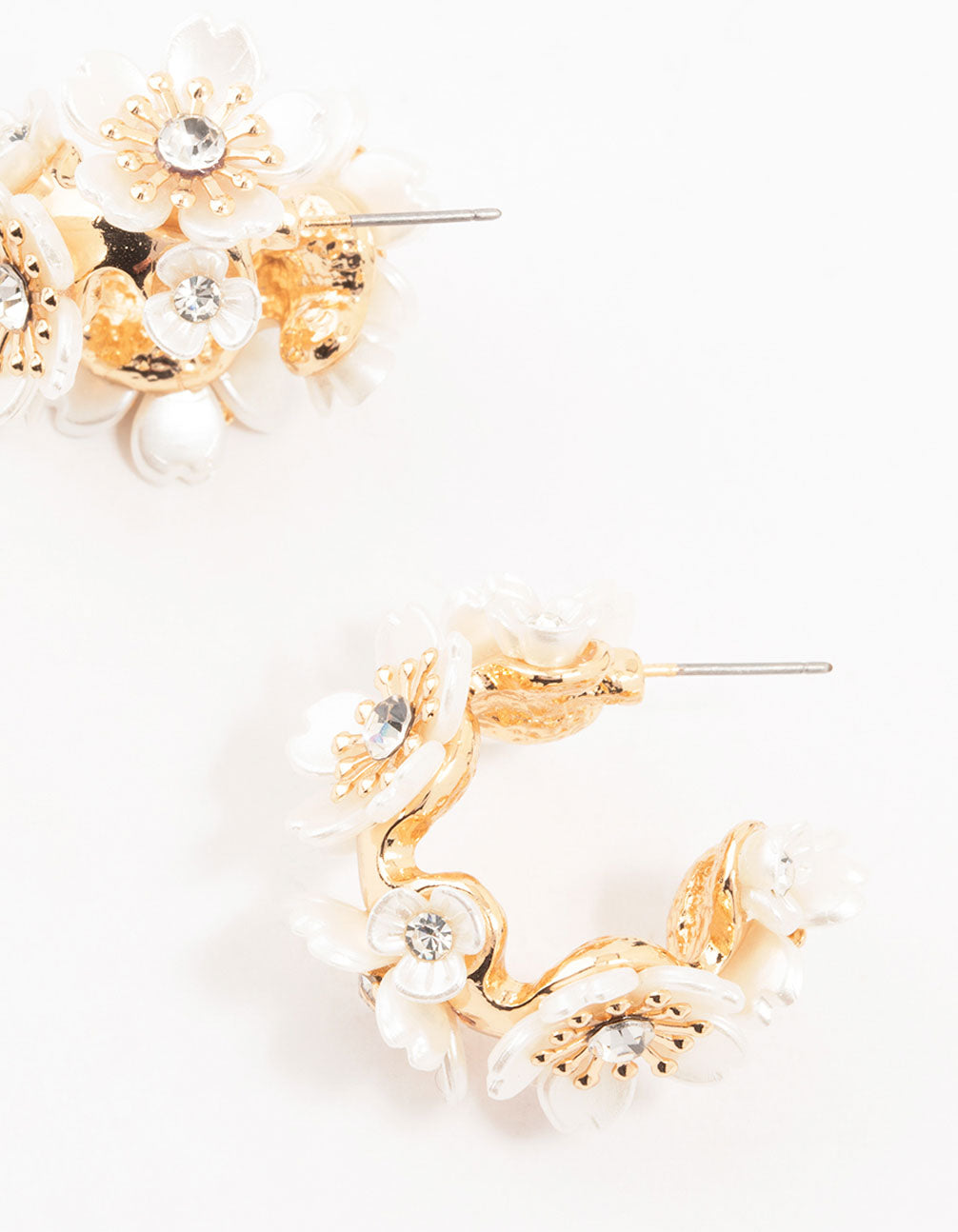 Gold Pearlised Flower Medium Hoop Earrings