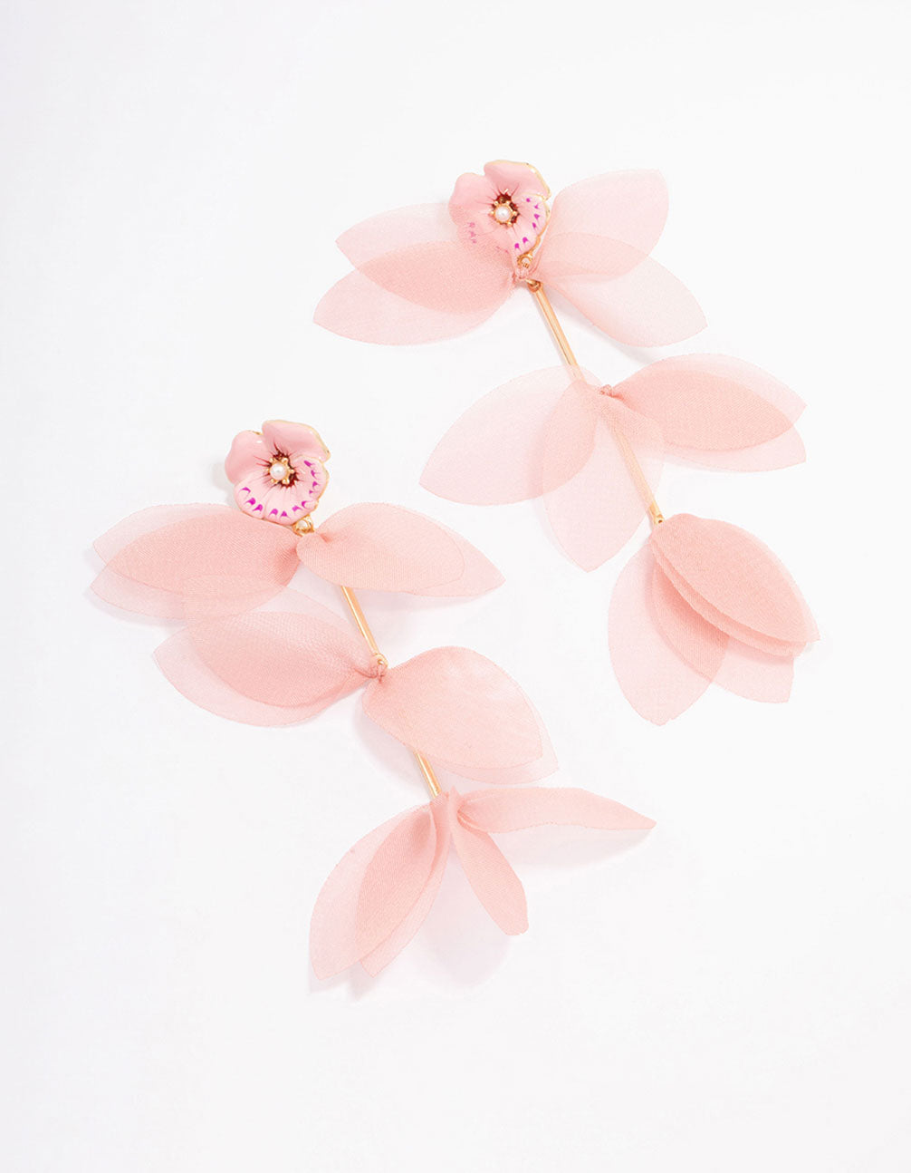 Complete your outfit with these gorgeous, gold-toned drop earrings. These lovely drop earrings feature a selection of pink fabric petals, perfect for adding a delicate touch to your outfit.