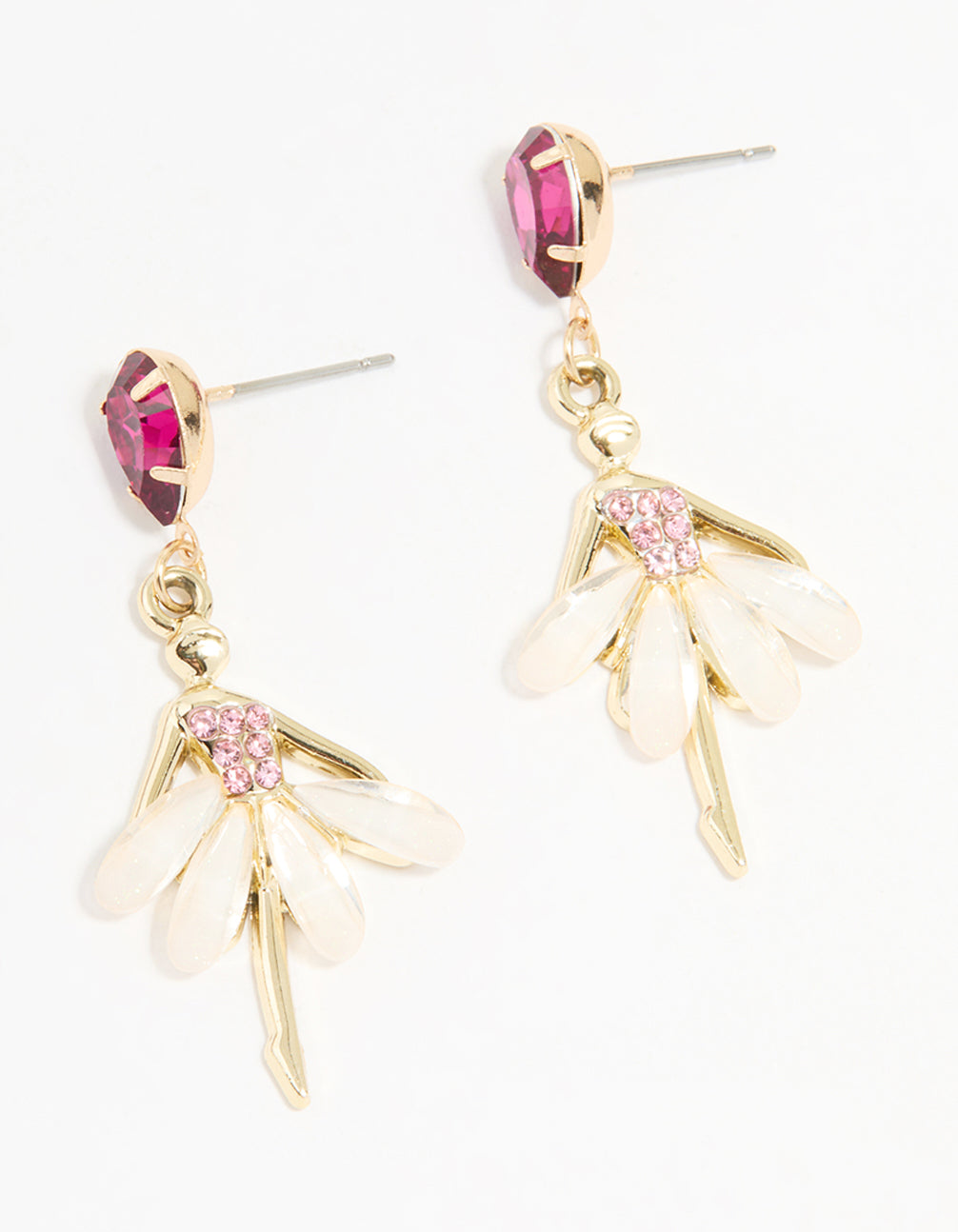 • Gold Pink Diamante Ballerina Drop Earrings - link has visual effect only