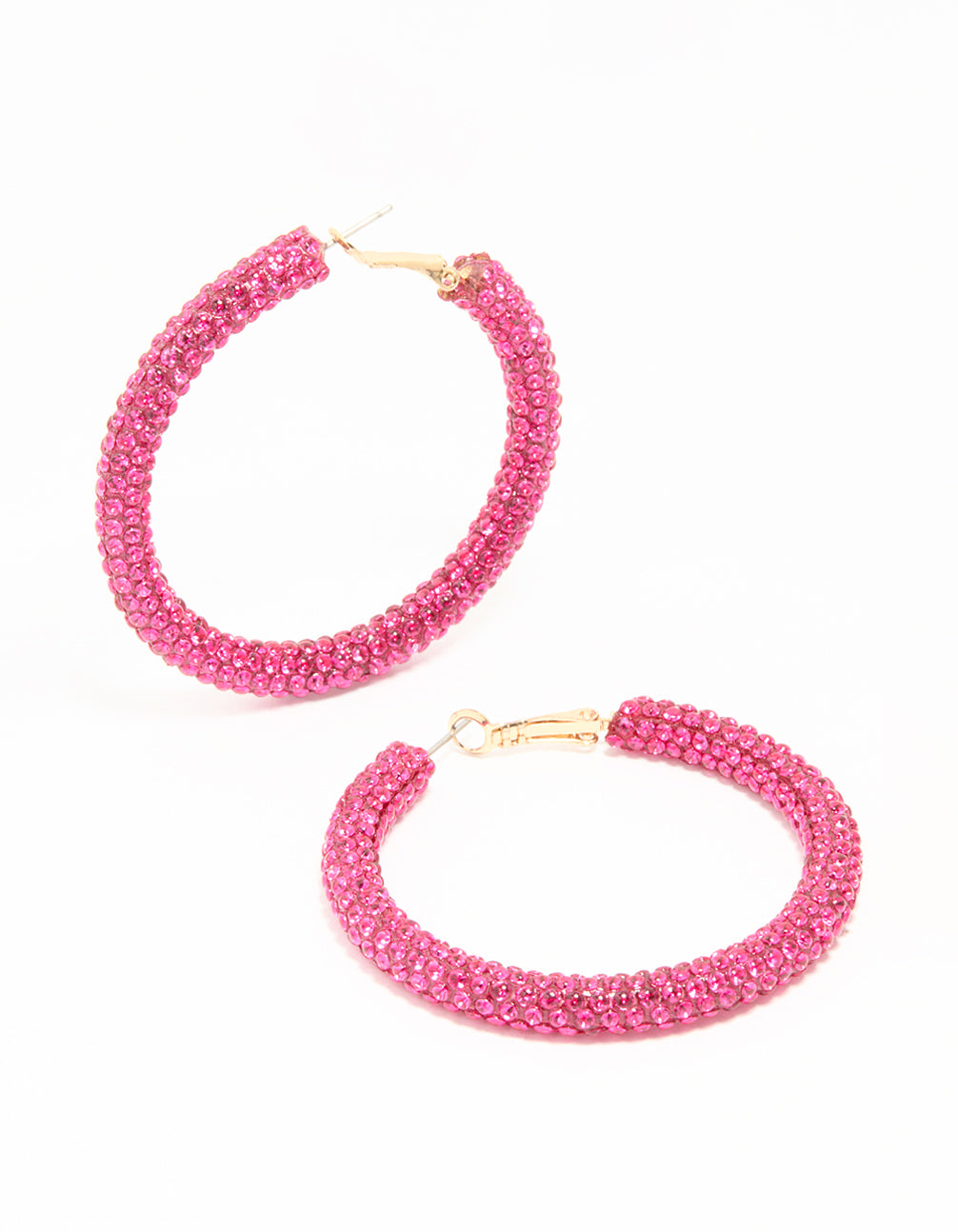 Brighten up your jewellery collection with the Gold Pink Diamante Hoop Earrings—perfect for adding a pop of fun and vibrancy to your look! These stylish hoop earrings feature a sleek gold finish paired with dazzling pink diamante accents, giving them a playful yet elegant vibe. Whether you're dressing up for a night out or adding sparkle to your casual outfit, these hoops are a versatile choice. Pair them with a flowy dress for chic sophistication or with jeans and a jumper for effortless glamour. Lightweight and eye-catching, these earrings are a must-have for anyone looking to elevate their accessory game!