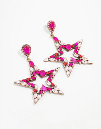 Bejewel your look with these gorgeous, gold-toned drop earrings. These statement earrings feature a bold star-shaped silhouette, encrusted with clusters of pink and silver diamante for a glamorous touch.