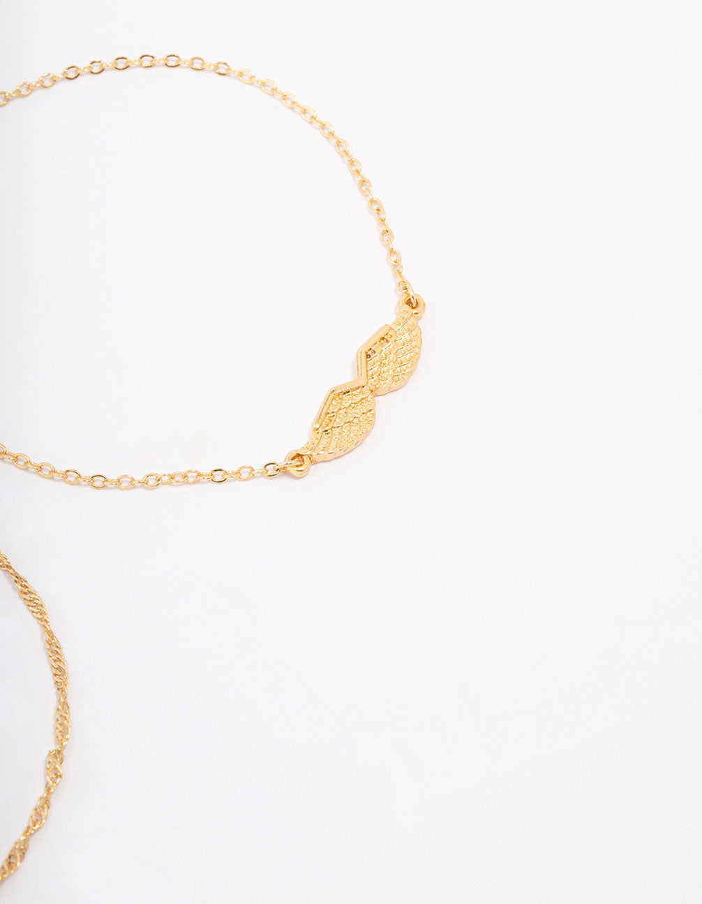 Curate your wrist stack with this set of timeless, angel wing bracelets. This bracelet pack contains two individual, gold plated bracelets — perfect for layering together or styling solo.