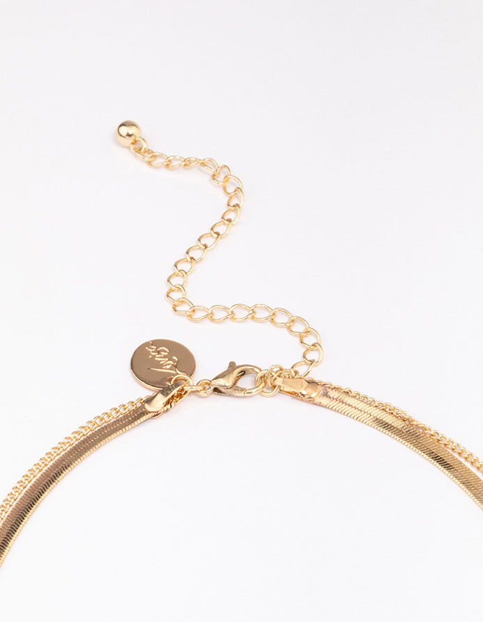 Gold Plated Baguette Snake Emerald Layered Necklace