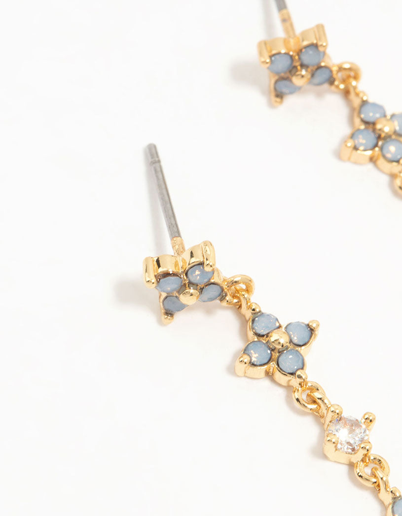 Gold Plated Blue Cubic Zirconia Floral Drop Earrings