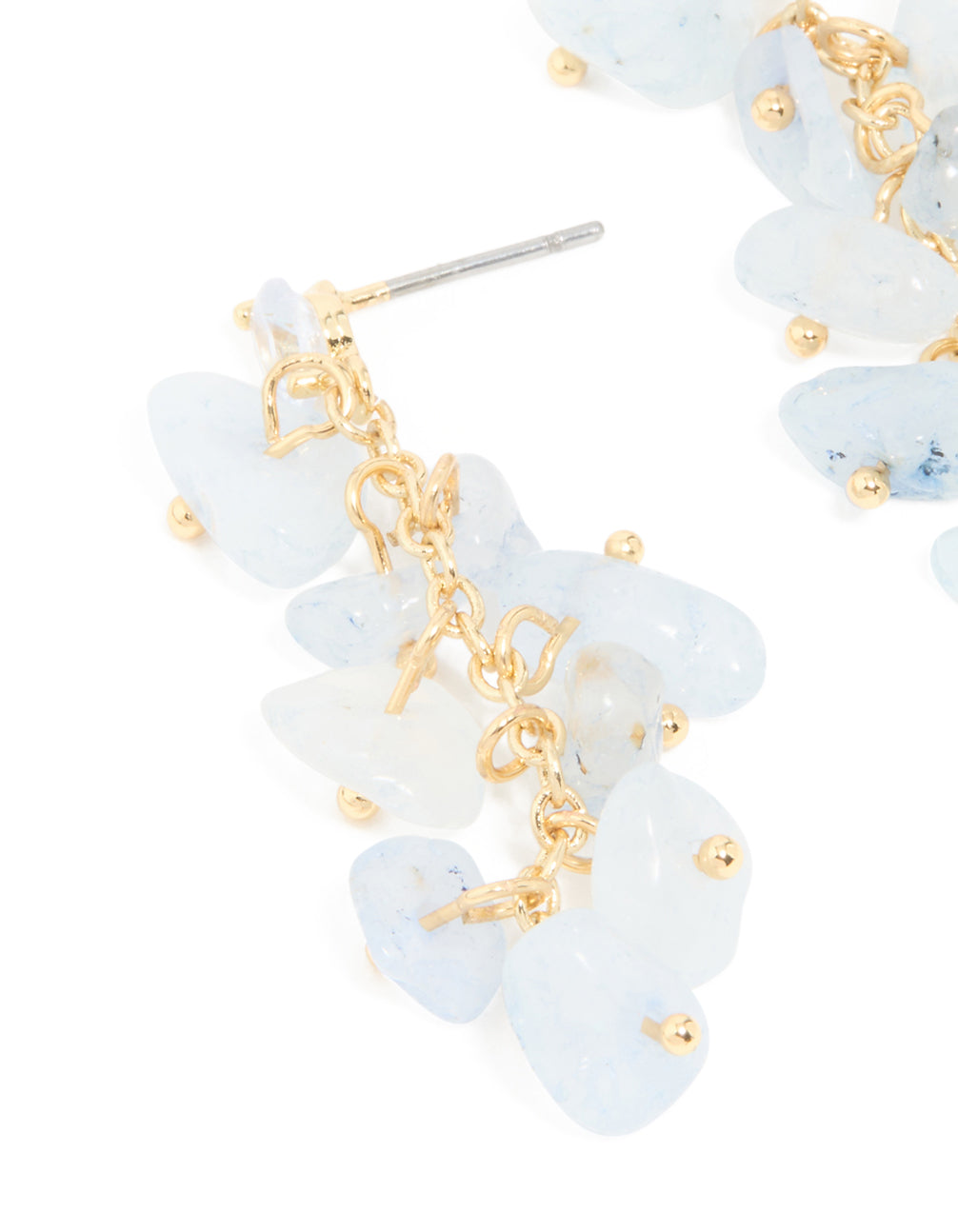 Gold Plated Blue Semi Precious Stone Cubic Zirconia Drop Earrings