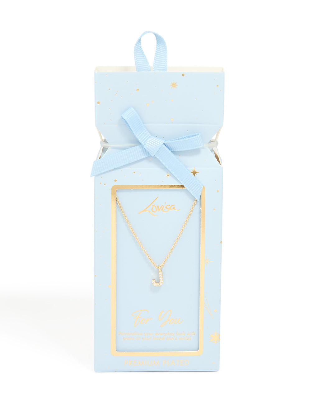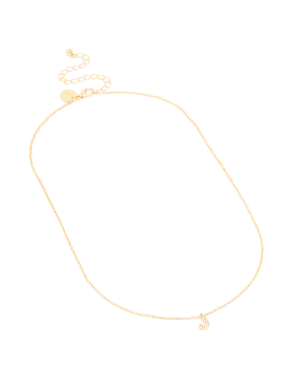 Gold Plated Brass Cubic Zirconia Letter J Necklace