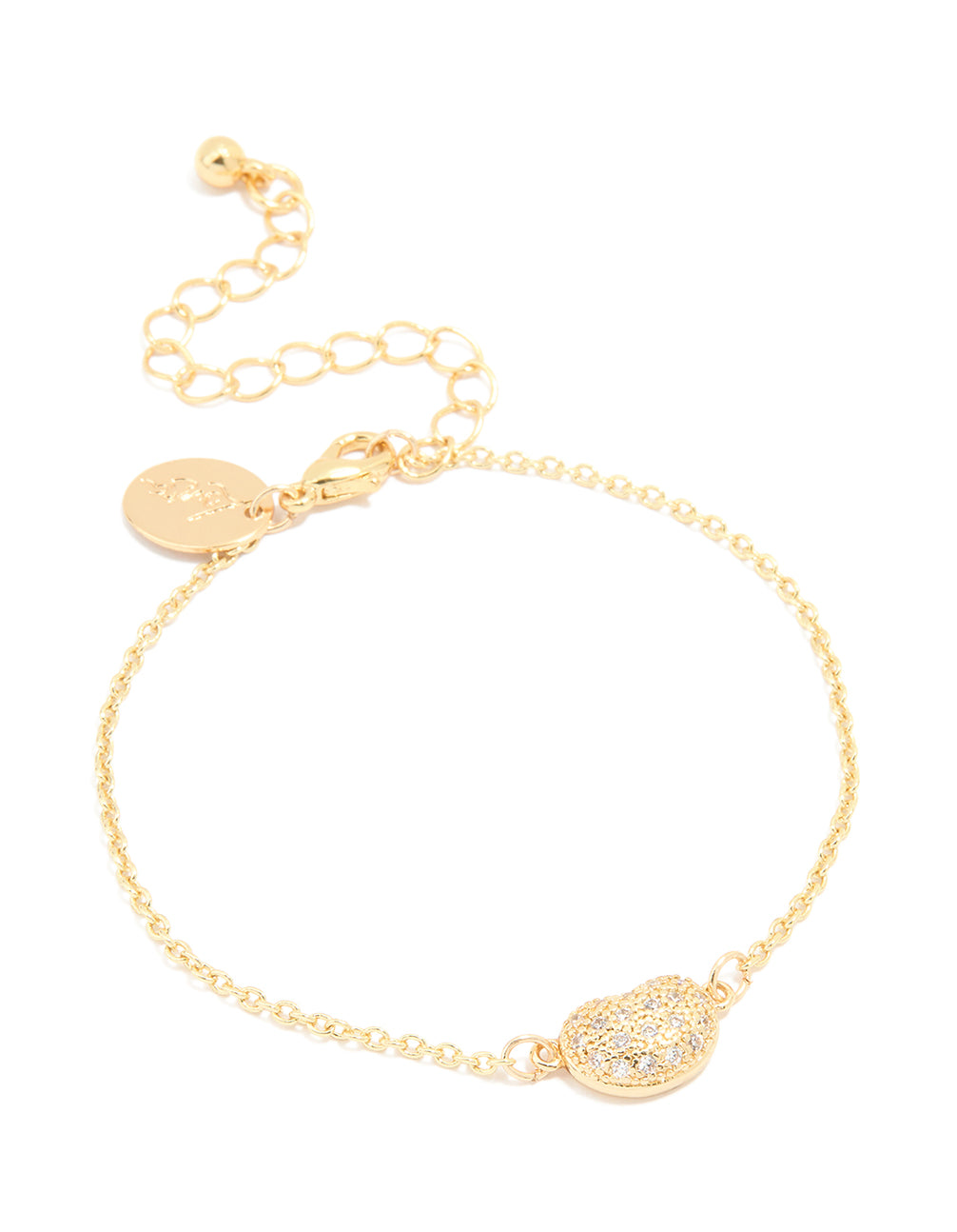 Gold Plated Brass Cubic Zirconia Single Pebble Bracelet
