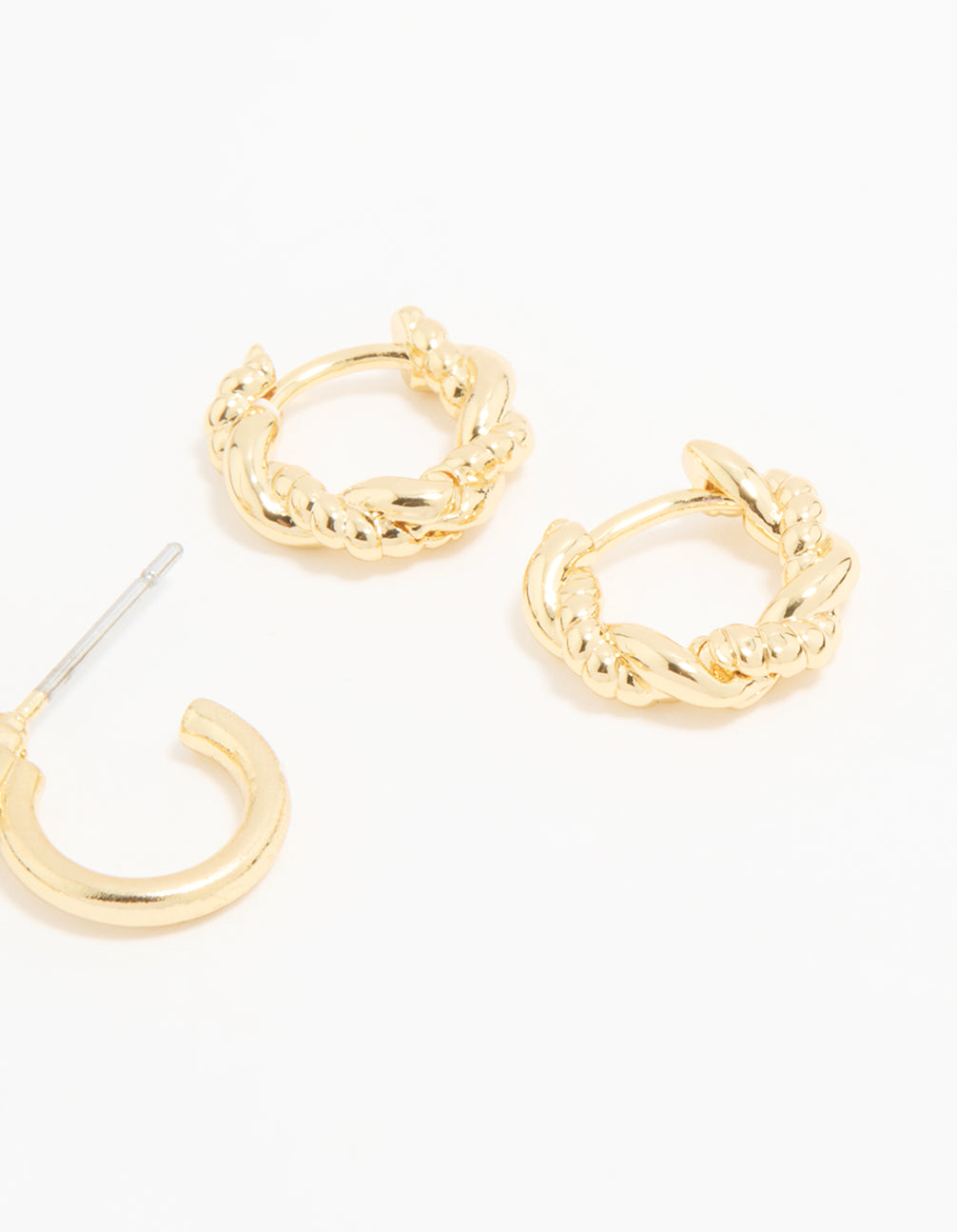 Gold Plated Brass Cubic Zirconia Small Stud & Huggie Earrings 3-Pack