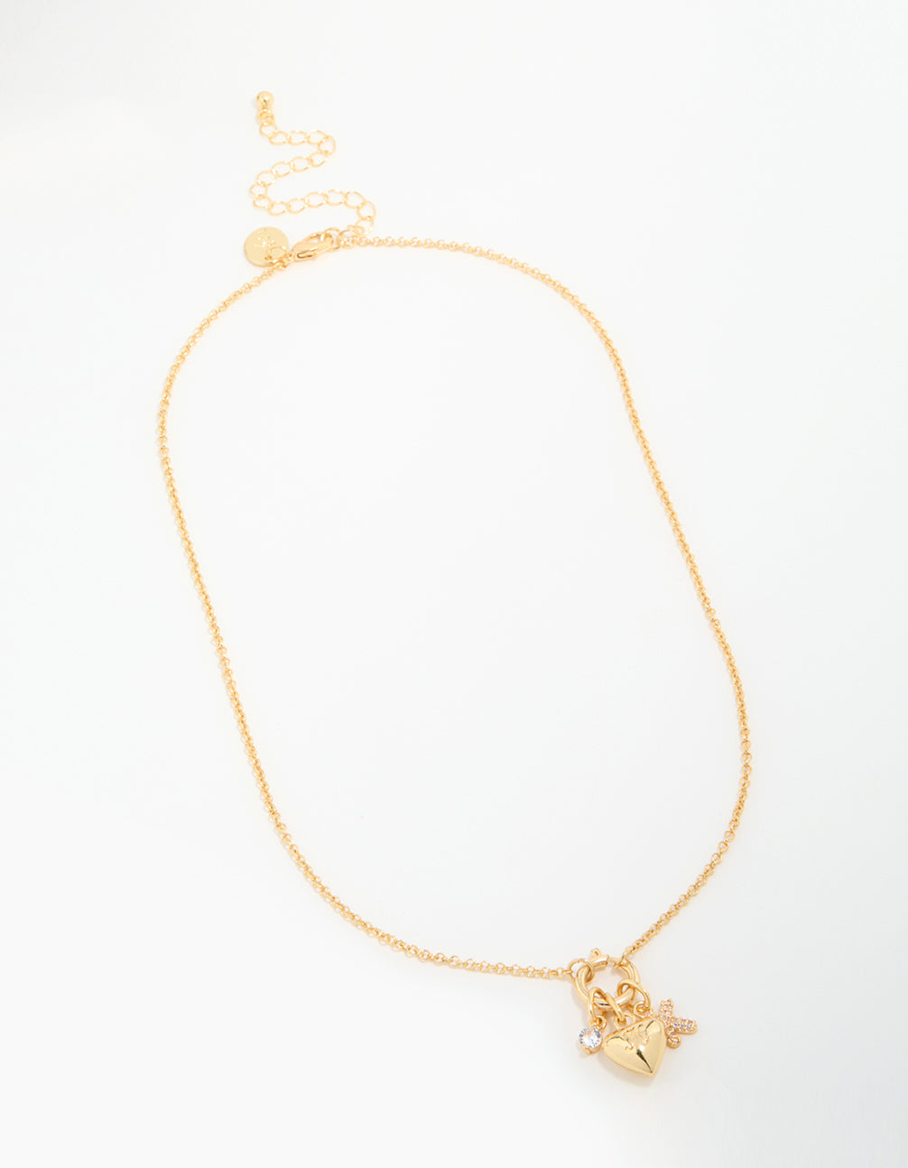 Gold Plated Bubble K & Heart Charm Necklace Gold Plated Bubble K & Heart Charm Necklace Gold Plated Bubble K & Heart Charm Necklace