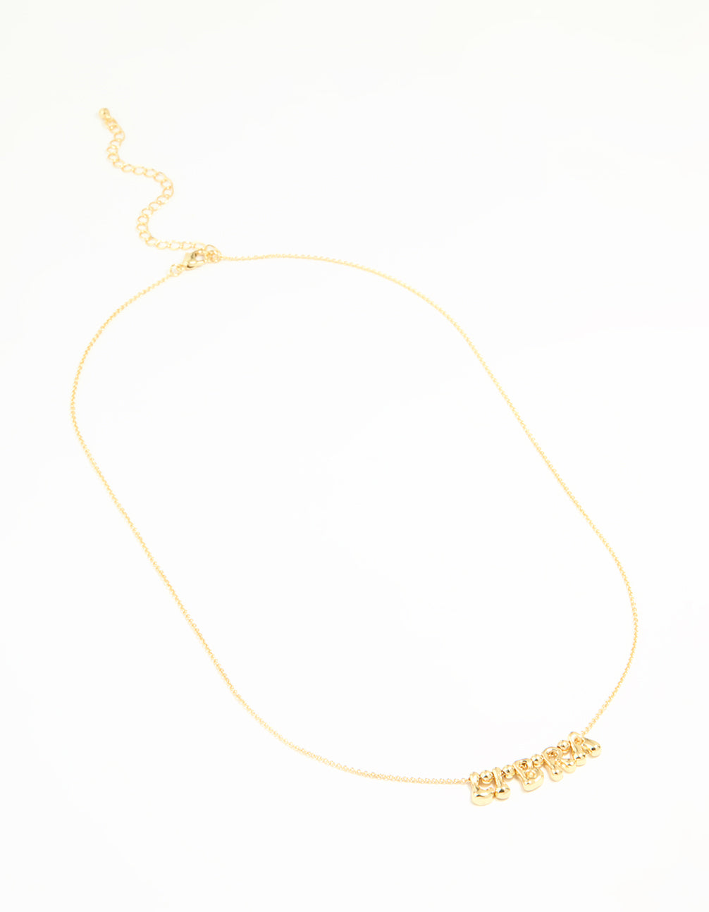 Celebrate your star sign in style with this Gold Plated Bubble Libra Pendant Necklace! Featuring the word "Libra" spelled out in playful bubble letters, this pendant necklace is perfect for astrology lovers looking to showcase their zodiac pride. Whether you're dressing up for a night out or keeping it casual with jeans and a jumper, this Libra necklace adds a personalised touch to any look. Perfect as a thoughtful gift for the Libra in your life or as a treat for yourself, it's a versatile piece that's easy to pair with everything from casual outfits to dressy ensembles. Add this zodiac-inspired jewellery to your collection and let your star sign shine!