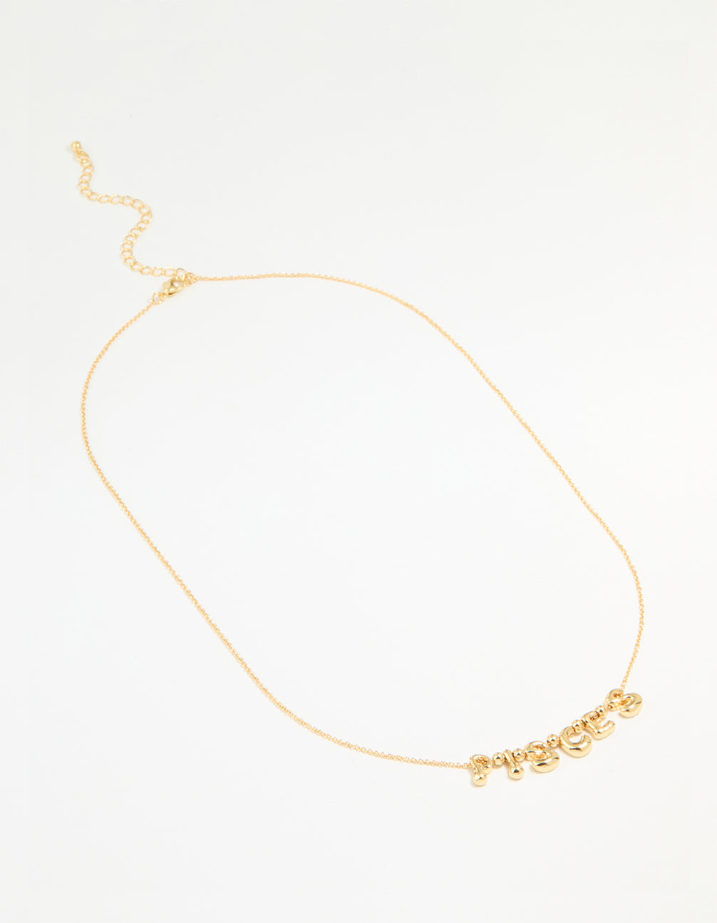 Show off your star sign in style with this Gold Plated Bubble Pisces Pendant Necklace! Perfect for astrology lovers, this pendant necklace features the word "Pisces" spelled out in playful bubble letters, adding a youthful and personal touch to your jewellery collection. This necklace has a radiant shine that pairs beautifully with any outfit. Whether you're layering it with other necklaces for a stylish vibe or wearing it solo to make a statement, this necklace works brilliantly for casual looks or dressed-up occasions. Ideal for gifting or treating yourself, it's a fun and stylish way to wear your zodiac pride wherever you go.