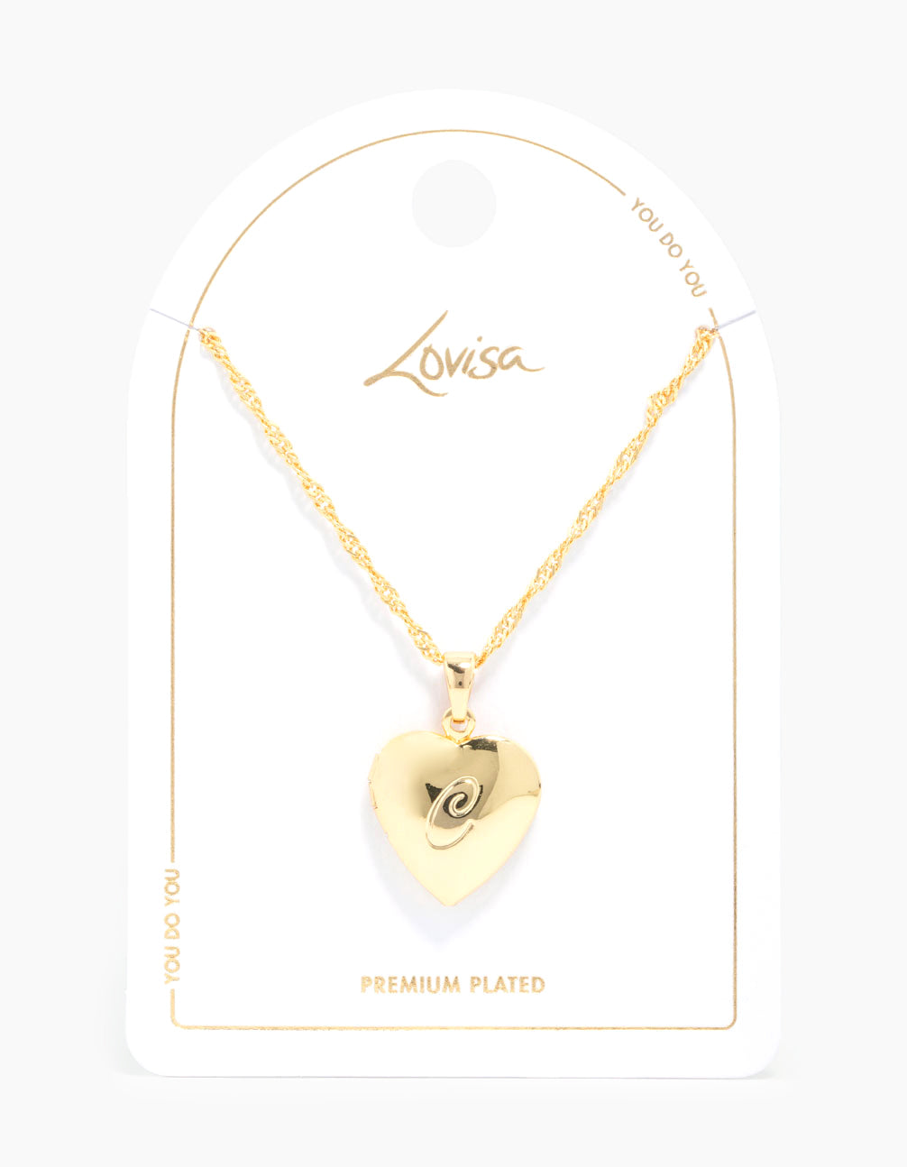 Add a personal touch to your style with this stunning gold plated necklace! Featuring a charming heart locket engraved with a "C," it's perfect for adding a bit of fun and elegance to your collection.