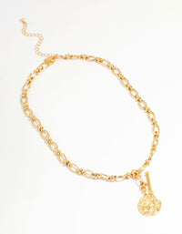 Elevate your look with this Gold Plated Coin Pendant T&O Necklace, a stunning necklace that's all about effortless elegance. With its sleek toggle-and-ring design and a beautifully detailed coin pendant, this gold-plated necklace is perfect for layering or making a solo statement. Its versatile Y-shape adds a modern twist to classic jewellery, making it ideal for any occasion – from casual brunches to chic evening outings. Pair it with a flowy dress for a boho vibe or team it with a tailored blazer for a polished edge. Whether you're dressing up or keeping it low-key, this necklace brings just the right amount of charm and sophistication. A must-have for anyone who loves stylish and timeless jewellery!