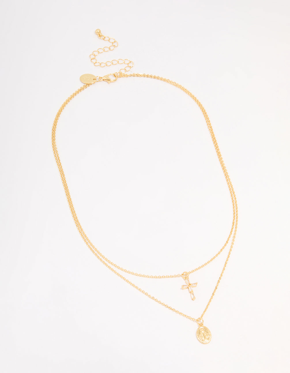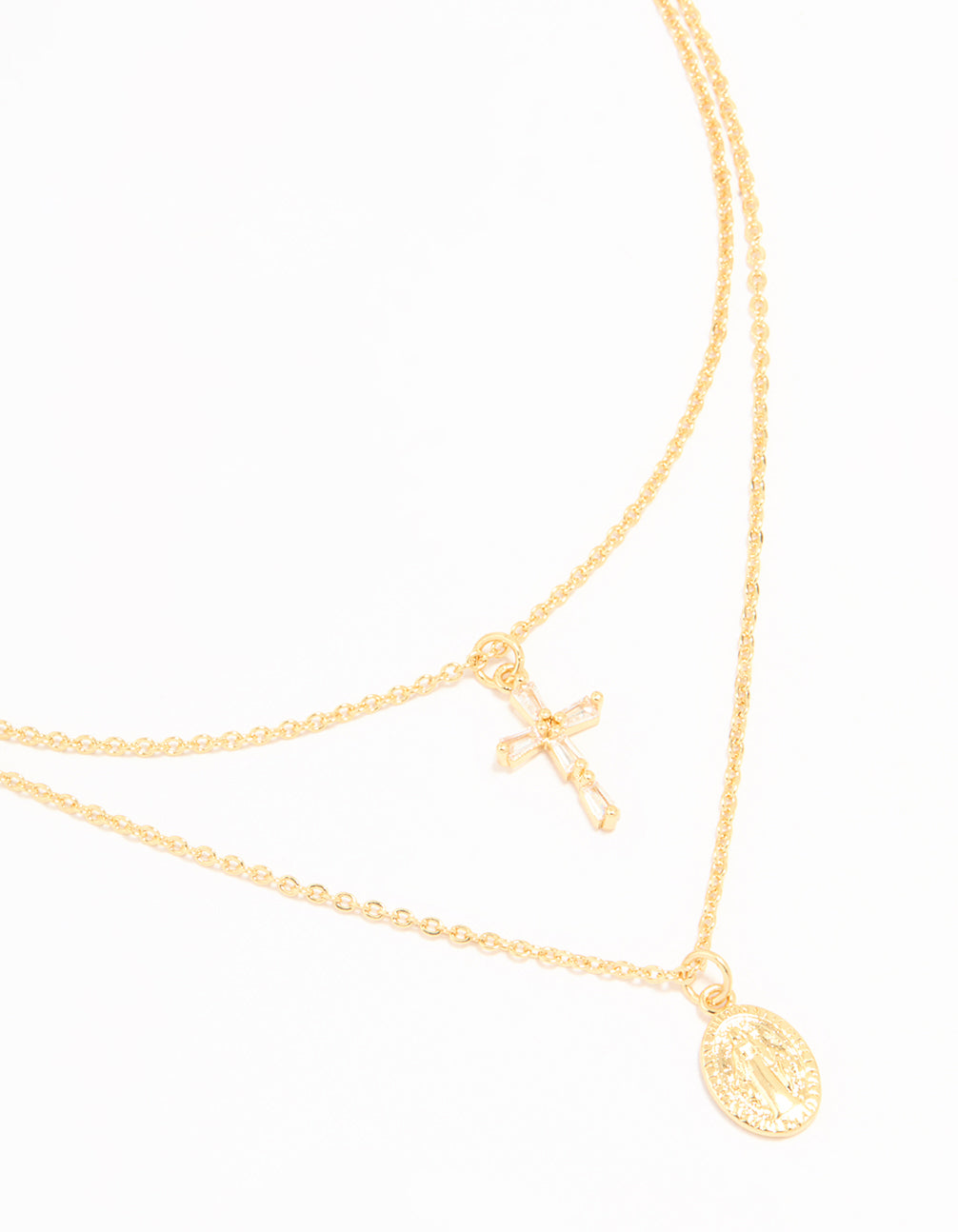 Gold Plated Cross & Mary Layered Necklace
