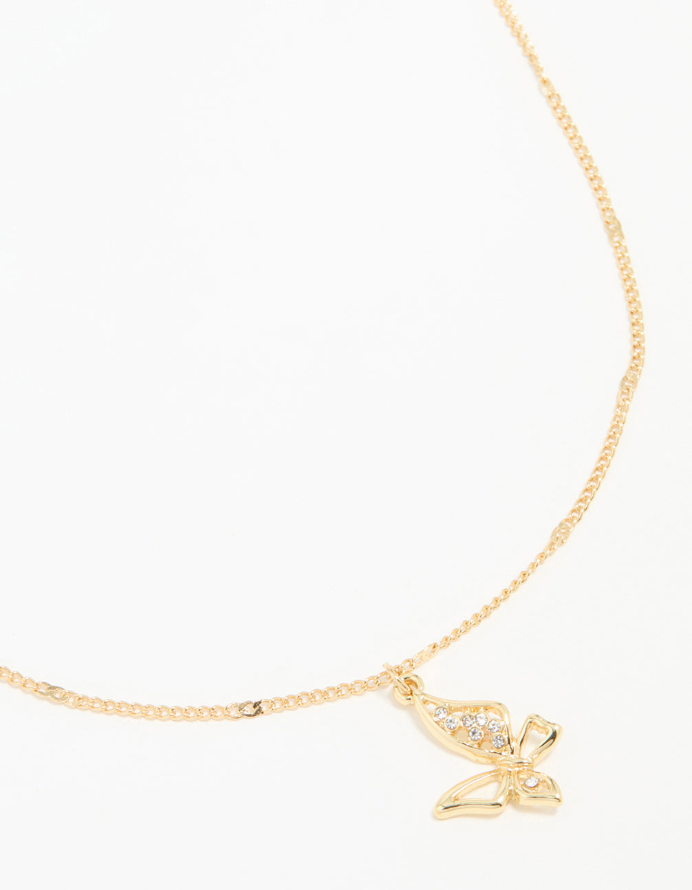 Gold Plated Cubic Zirconia Asymmetrical Butterfly Pendant Necklace