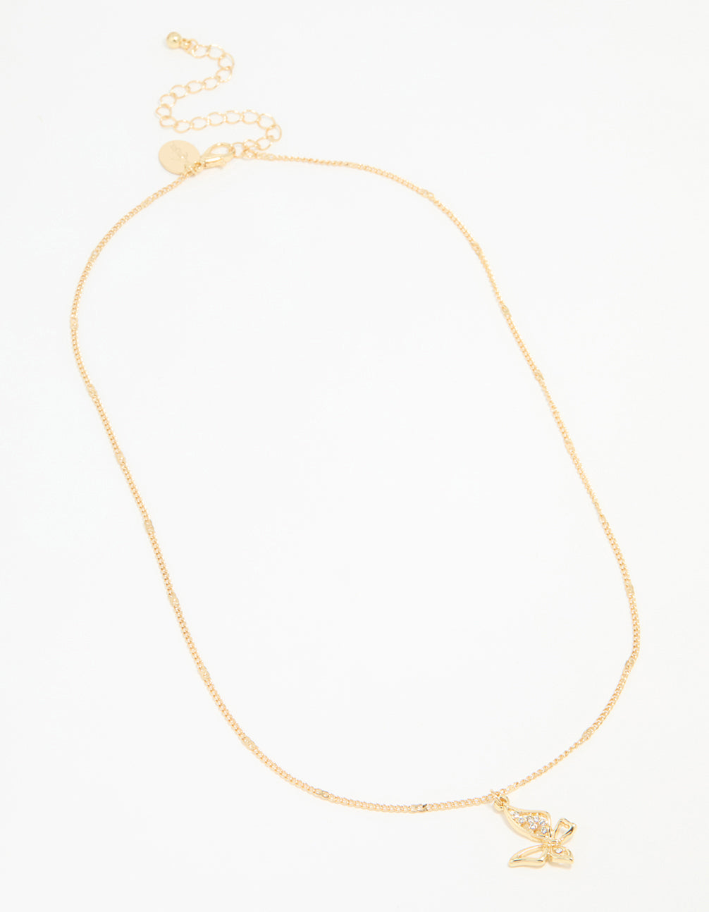 Add a touch of sparkle to your outfit with this Gold Plated Cubic Zirconia Asymmetrical Butterfly Pendant Necklace. This stunning piece combines the elegance of gold-plated jewellery with the playful charm of a butterfly design, adorned with dazzling cubic zirconia crystals. Perfect for day-to-night styling, this pendant necklace pairs beautifully with a casual blouse or a chic evening dress. Its asymmetrical shape adds a modern twist, making it ideal for anyone who loves unique, statement jewellery. Whether you're heading to brunch, a party, or a romantic dinner, this necklace is a versatile accessory that shines in any setting. A perfect gift or treat-yourself moment, it's a must-have for any jewellery collection!