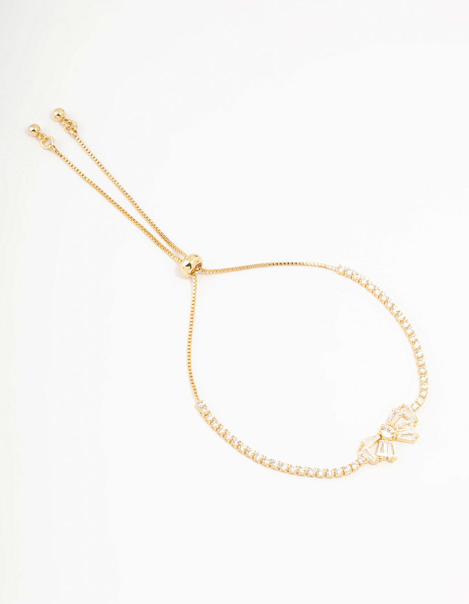 Gold Plated Cubic Zirconia Baguette Bow Toggle Bracelet