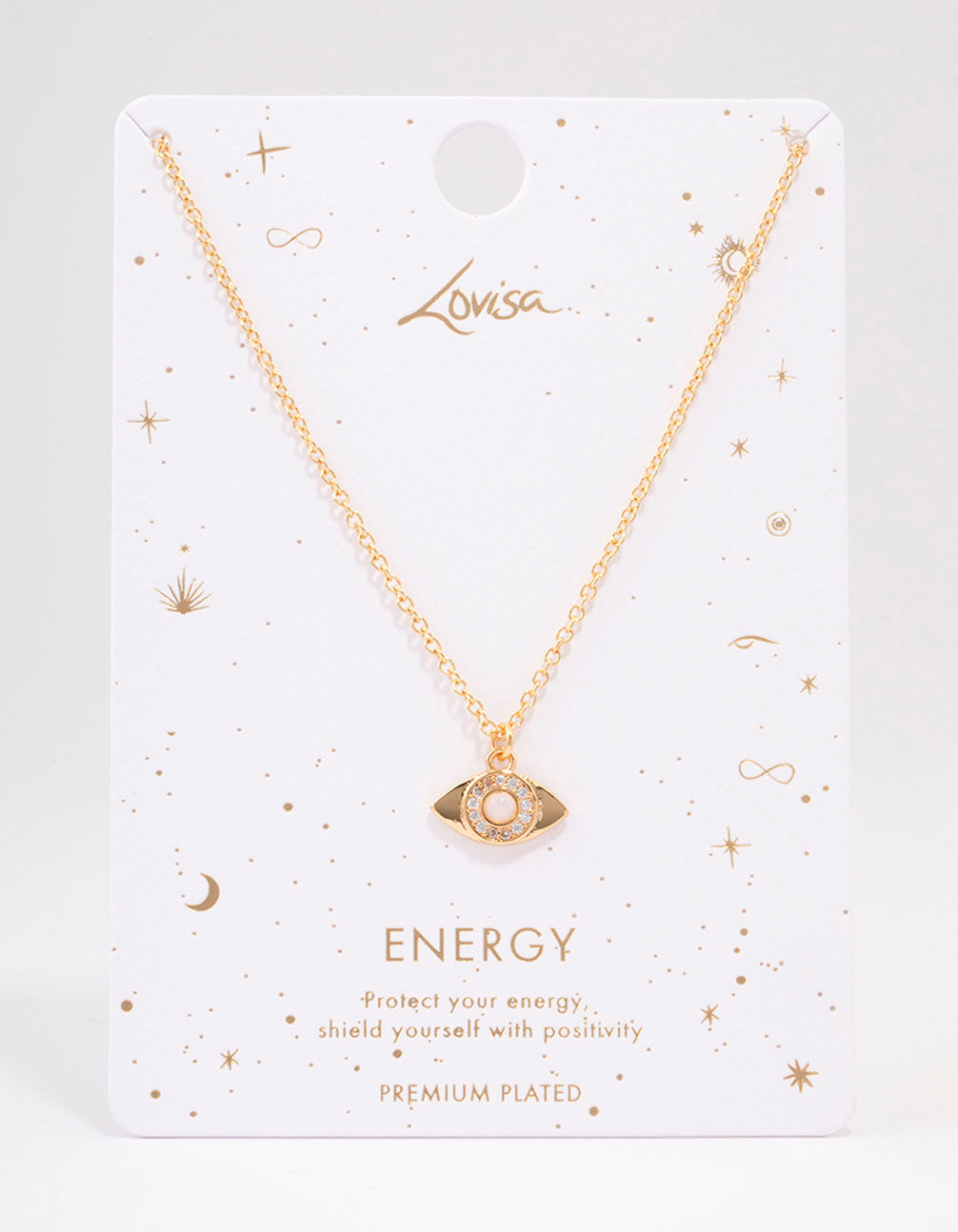 Protect your energy with this signature, gold plated pendant necklace. This simple pendant features an evil eye charm encrusted with cubic zirconia crystals for a touch of sparkle.