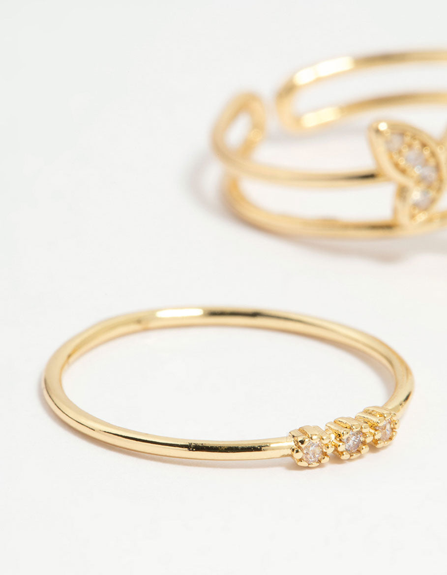 Gold Plated Cubic Zirconia Butterfly Rings 3-Pack