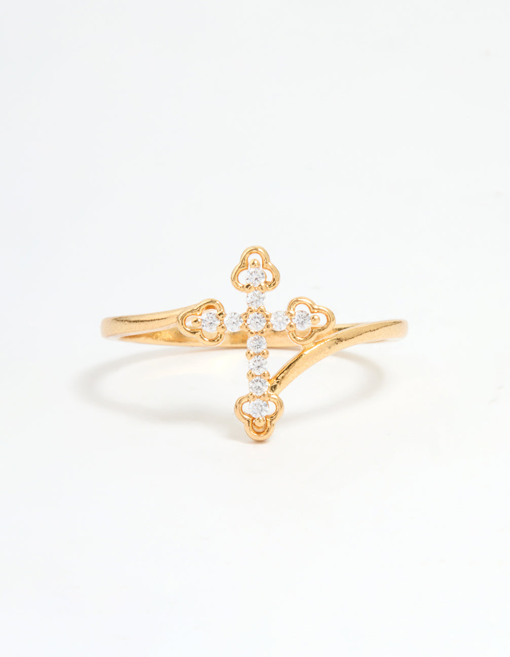Gold Plated Cubic Zirconia Cross Ring