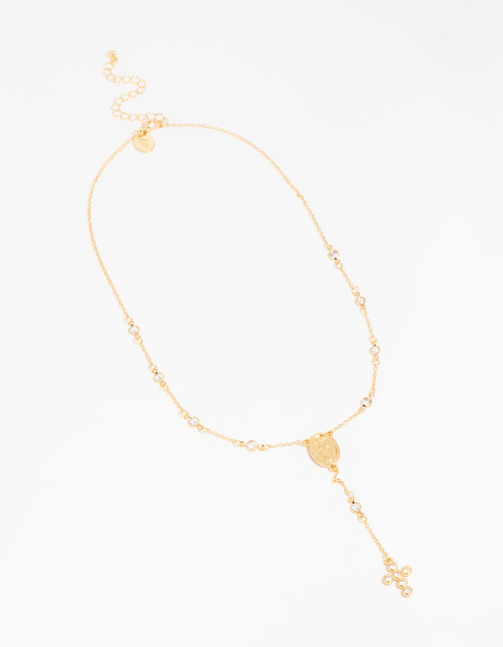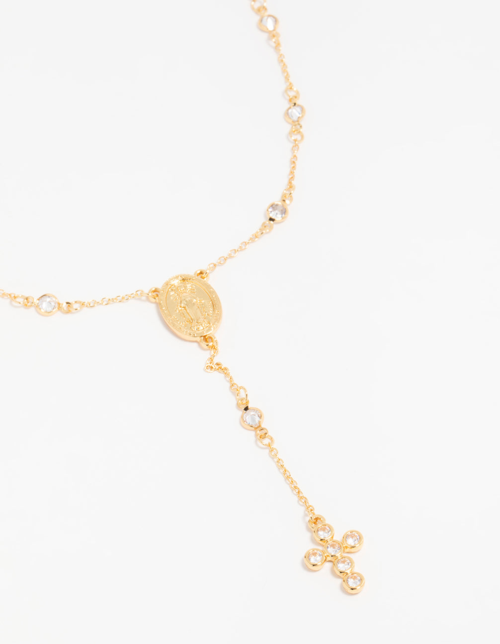Gold Plated Cubic Zirconia Cross Y-Necklace