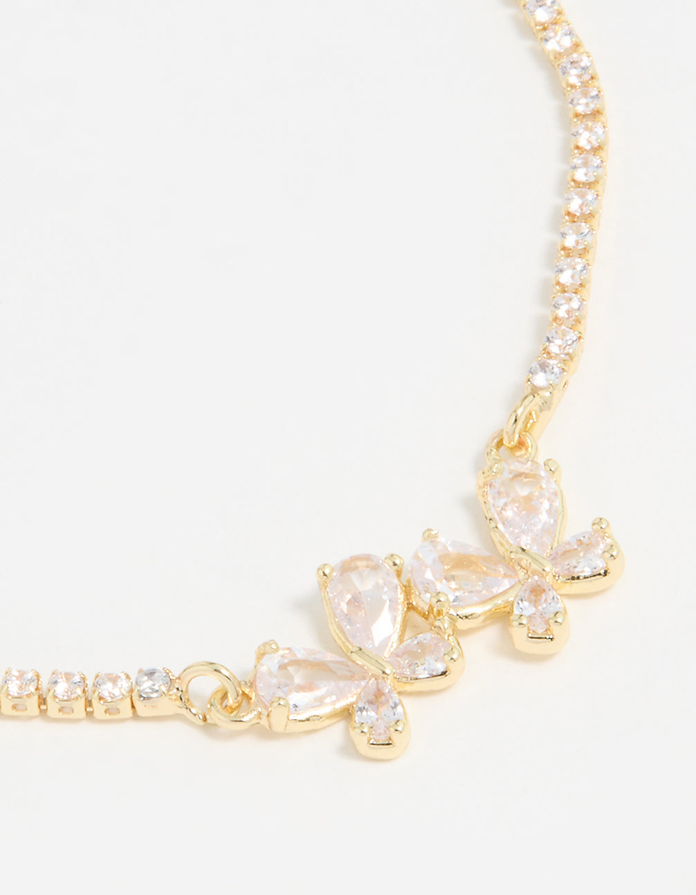 Gold Plated Cubic Zirconia Double Butterfly Toggle Bracelet