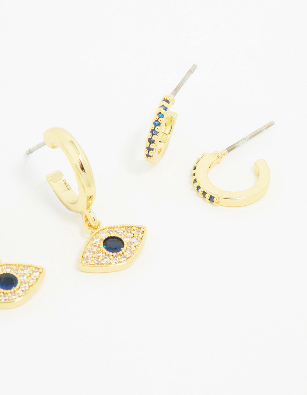 Gold Plated Cubic Zirconia Evil Eye Earrings 3-Pack