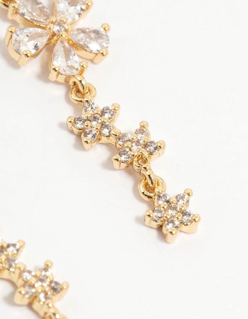 Gold Plated Cubic Zirconia Flower Drop Earrings