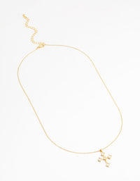 Gold Plated Cubic Zirconia Gothic Cross Necklace & Stud Earrings Set
