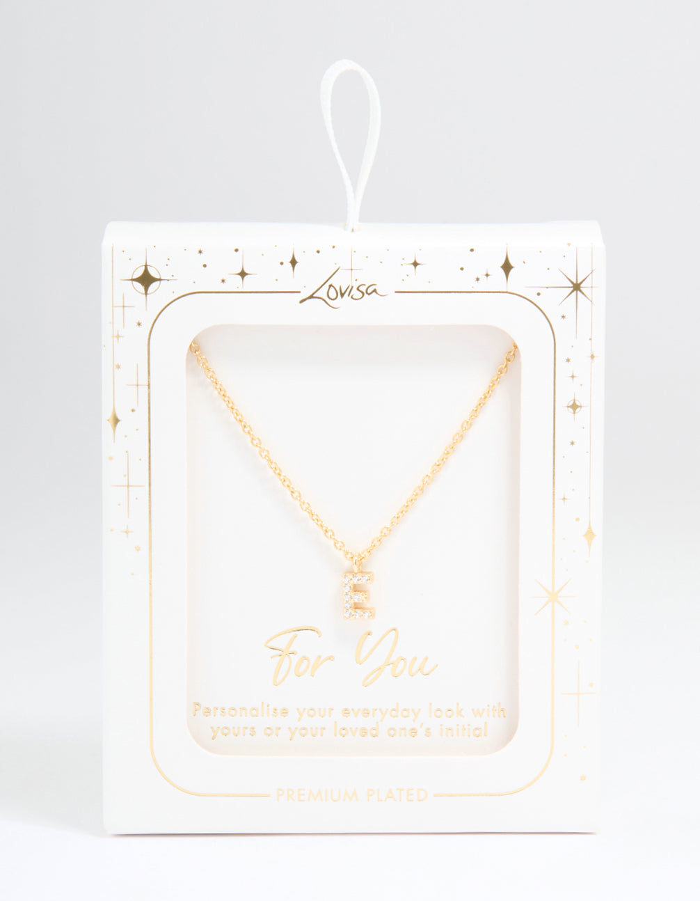 Show off your style and make it personal with this Gold Plated Cubic Zirconia Letter E Necklace! This gorgeous pendant necklace combines premium gold plating with sparkling cubic zirconia crystals to create a chic and timeless design. Perfect for showcasing your initial or gifting to a friend, it's a versatile piece to elevate any outfit. Whether you're dressing up for a special occasion or adding a touch of elegance to your everyday look, this necklace is a perfect match. Pair it with a flowy dress for that polished vibe or layer it with other gold-plated necklaces for a stylish, stacked look.