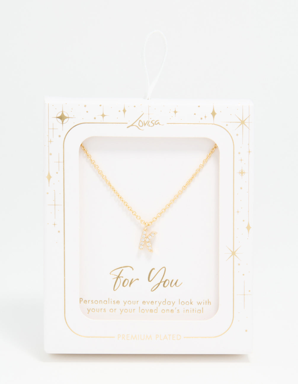 Looking for something chic and personal? The Gold Plated Cubic Zirconia Letter K Necklace is just the thing! Perfect for adding a touch of sparkle to your everyday look, this pendant necklace features a sleek gold-plated finish and dazzling cubic zirconia crystals forming the letter K. Whether you're personalising your own style or gifting it to someone special with that initial, it's a timeless piece that works for any occasion. Pair it with a casual blouse for brunch or a little black dress for an evening out—it's versatile enough to shine anywhere!