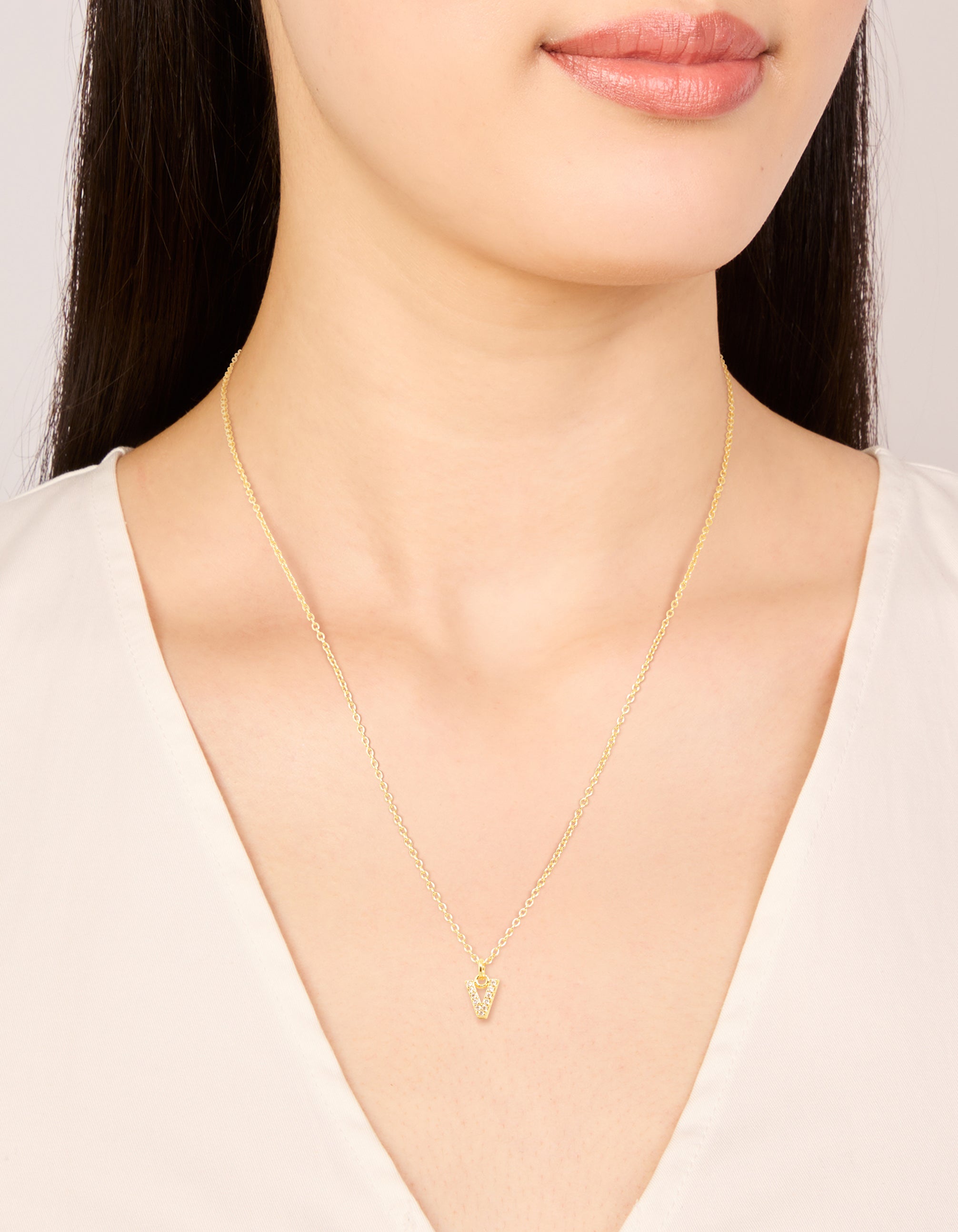 Looking for the perfect gift? The Gold Plated Cubic Zirconia Letter V Necklace is a stylish way to show someone you care or treat yourself to a little shimmer! Featuring a delicate gold-plated finish and dazzling cubic zirconia accents, this initial necklace is both personal and chic. Gift it to your friend with their initial for a thoughtful surprise, or wear your own to add a touch of individuality to any outfit. Whether it’s for a birthday, celebration, or just because, this piece is ideal for gifting and guaranteed to be cherished. Versatile and timeless, it pairs effortlessly with casual looks or dressy outfits, making it the ultimate accessory. Give the gift of shimmer and personality today!