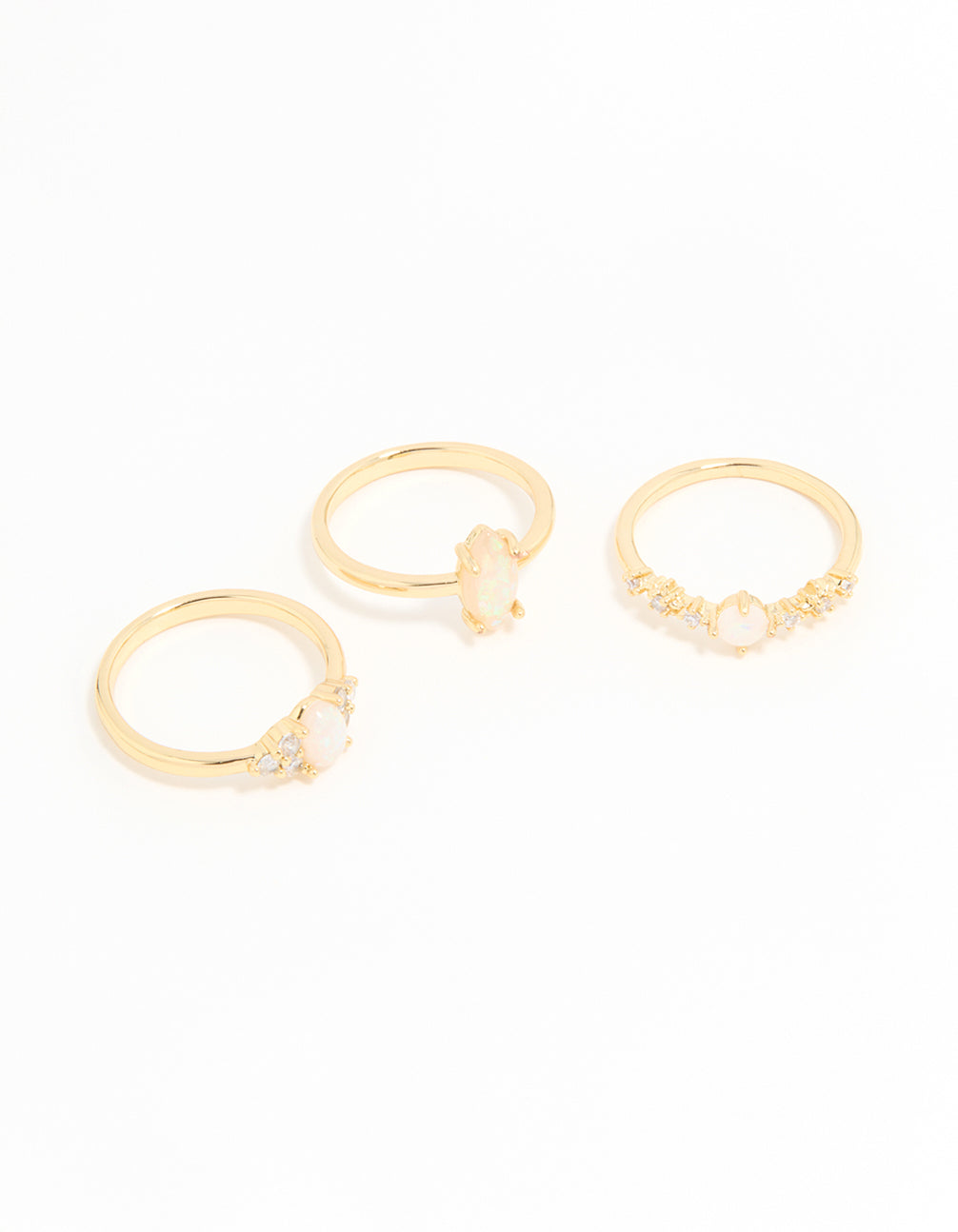 Gold Plated Cubic Zirconia Marquise Stacking Rings 3-Pack