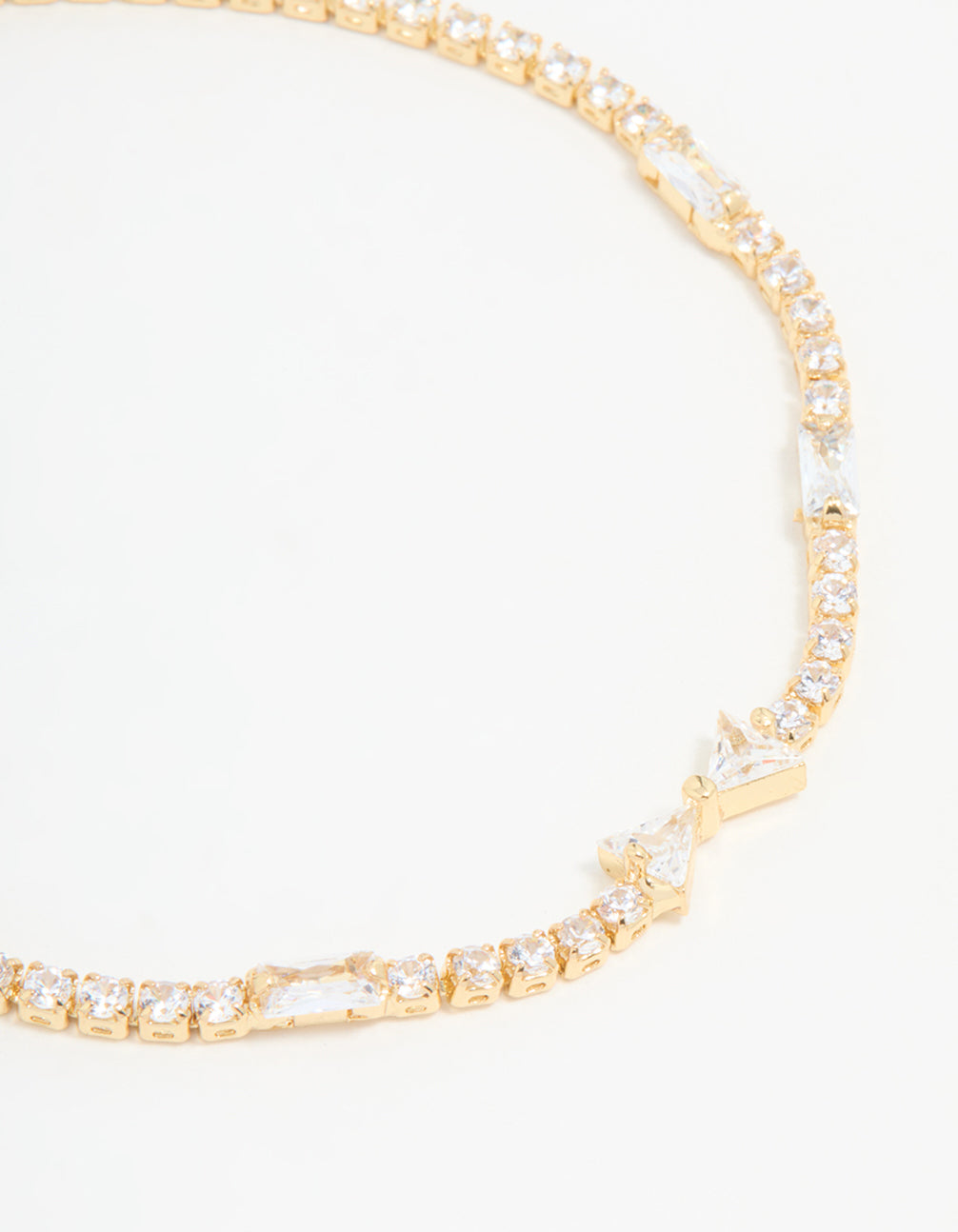 Gold Plated Cubic Zirconia Mini Bow Tennis Bracelet