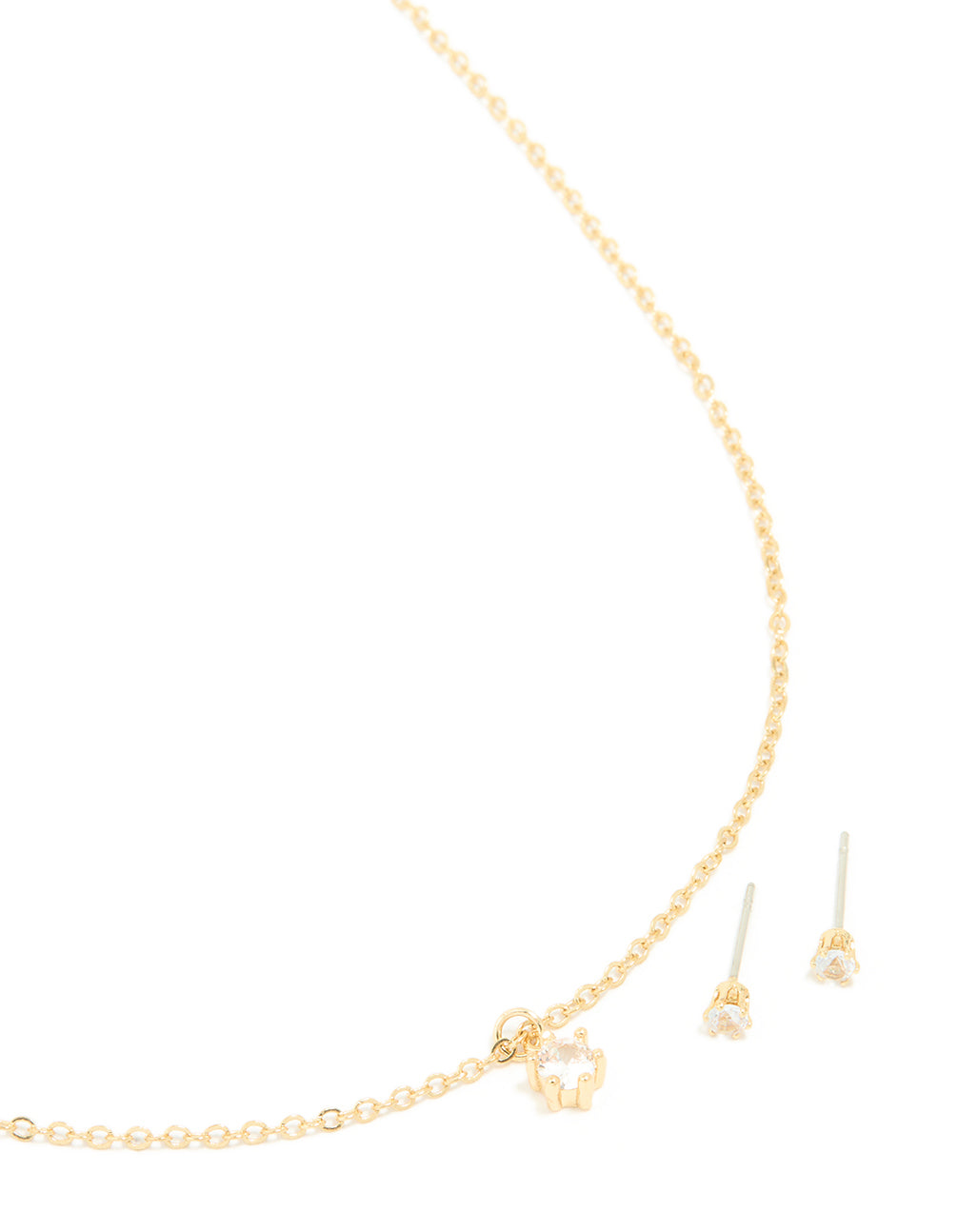 Gold Plated Cubic Zirconia Mini Pendant Necklace & Stud Earrings Set